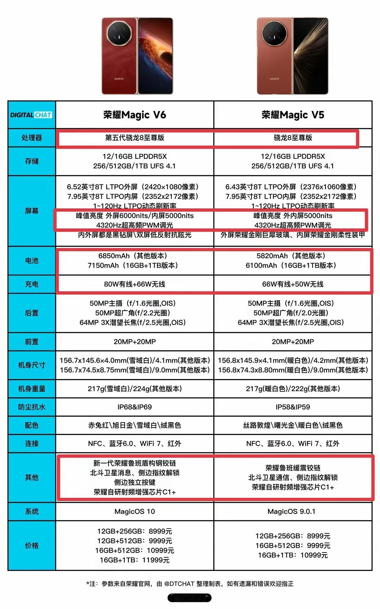 荣耀Magi V6相比于V5,起售价还是保持8999元没变,但512G和1TB版本都涨价了1000元,最高售价从10999元涨到了11999元