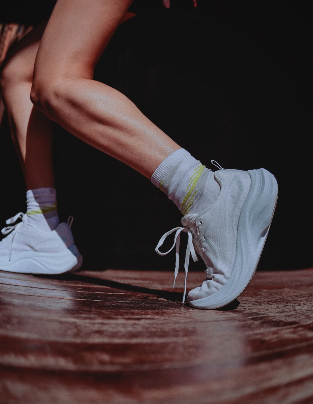 最戳我的小细节是自带淡淡的木质香,跑完步鞋子里也没异味,抗菌除臭这块真的太懂女生了。而且它日常穿也超适配,鞋身很轻,4cm增高悄悄拉腿,搭运动裤、牛仔裤都好看。所以日常通勤穿也很方便。