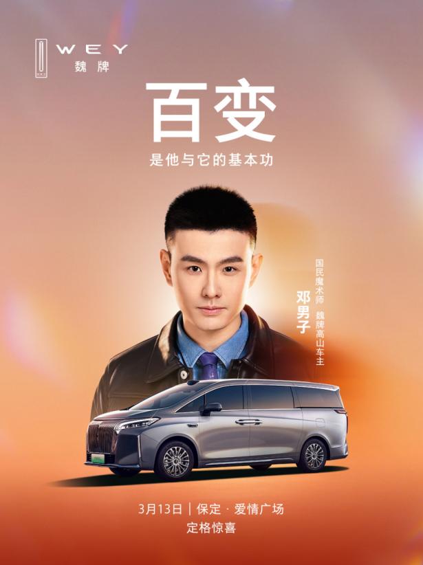 从引爆MPV市场到登陆春晚舞台,再到收获邓男子等一众明星认可,魏牌高山的每一步都走得很扎实。市场层面,连续6个月新能源MPV销量冠军的成绩说明消费者用真金白银认可了高山的产品力。品牌层面,"央视春晚新媒体指定用车"的身份和"央视严选"品质标签让高山的品牌形象更加高端。口碑层面,姜武、陈佩斯、欧阳震华、吴启华、邓亚萍、吴敏霞、孙越等明星先后"上车",现在邓男子也即将加入,明星车主阵容的持续壮大体现了高山在高端圈层中的广泛认可。邓男子在春晚期间零距离体验了高山的品质出行,被全系标配的Hi4性能版智能四驱电混系统、纯平地板、NAPPA真皮座椅、10点式座椅按摩等配置打动后选择购买。3月13日17:30,保定爱情广场的交付仪式上,他将正式提车。高山充分彰显了国产车型与合资旗舰车型同台竞争的实力,这个势头还在继续。邓男子成为魏牌高山车主