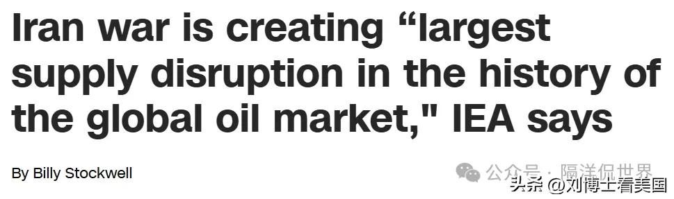 最新消息称,在同意释放中东战争期间创纪录数量的储油后一天,国际能源署正对未来几个月的供应发出警报:“中东战争正在造成全球石油市场历史上最大规模的供应中断。” 国际能源署在其月度石油报告中表示,霍尔木兹海峡的原油和石油产品流量——通常是全球约五分之一日产油的通道——已减少到“涓涓细流”。该机构称这条连接波斯湾与阿曼湾及阿拉伯海的水道为“世界上最关键的石油过境咽喉”。 报告称,由于海湾国家几乎没有其他出口原油的方式,且储罐不断充满,这些国家已将总石油产量减少至少每天1000万桶,并警告称,“如果航运流量不迅速恢复,供应损失将会增加。” 国际能源署还预测,本月全球石油供应将每天暴跌800万桶,中东地区的减产部分被其他生产国产量的增加所抵消。 报告称:“自2月28日开战以来,依赖海峡出口原油的七个海湾国家——沙特阿拉伯、伊拉克、阿联酋、科威特、卡塔尔、巴林和伊朗——中的大多数在一定程度上已大幅减少产量。”