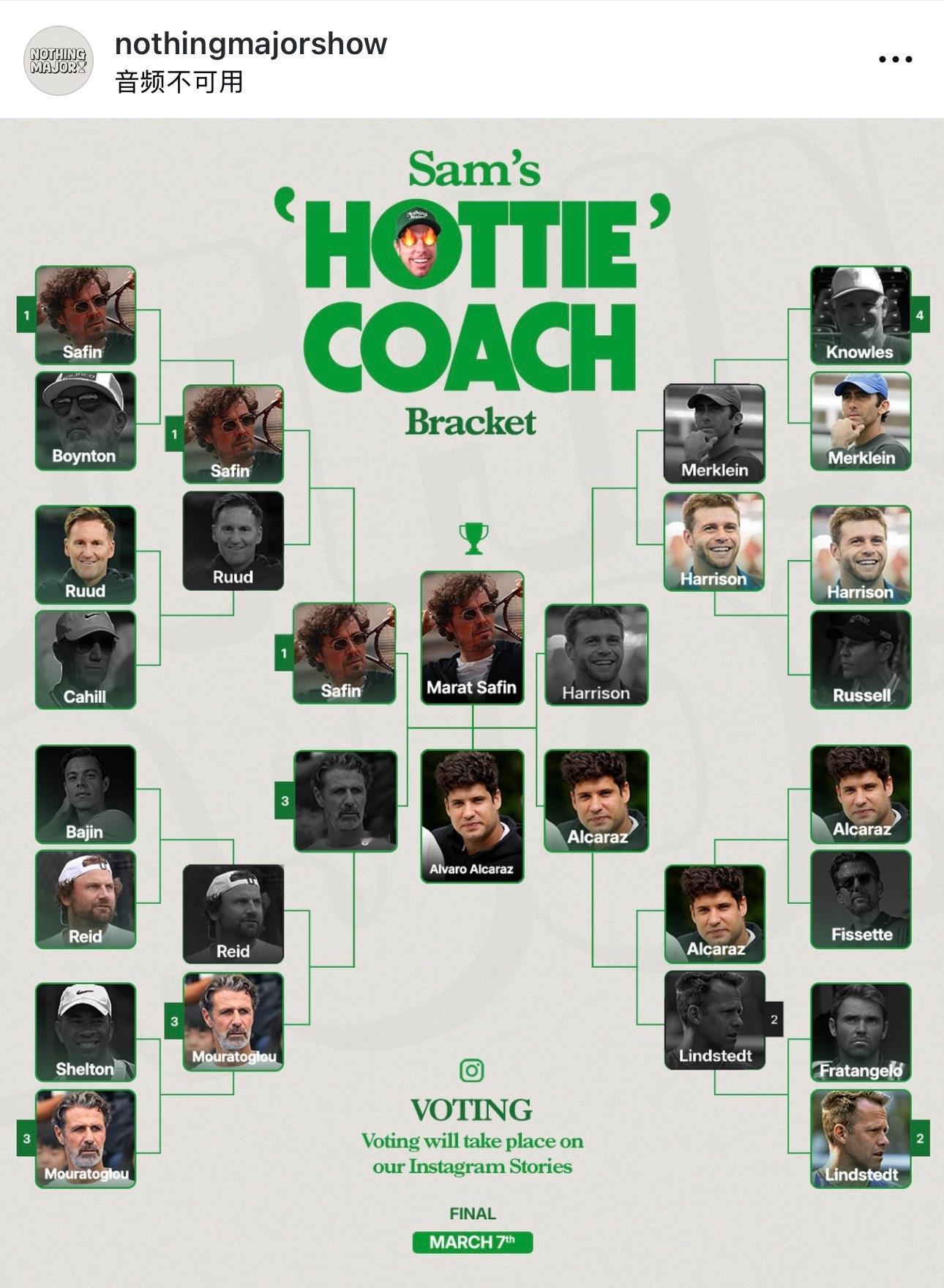 最近太忙,都没能实时关注由Nothing Major举办最帅教练评论的活动。