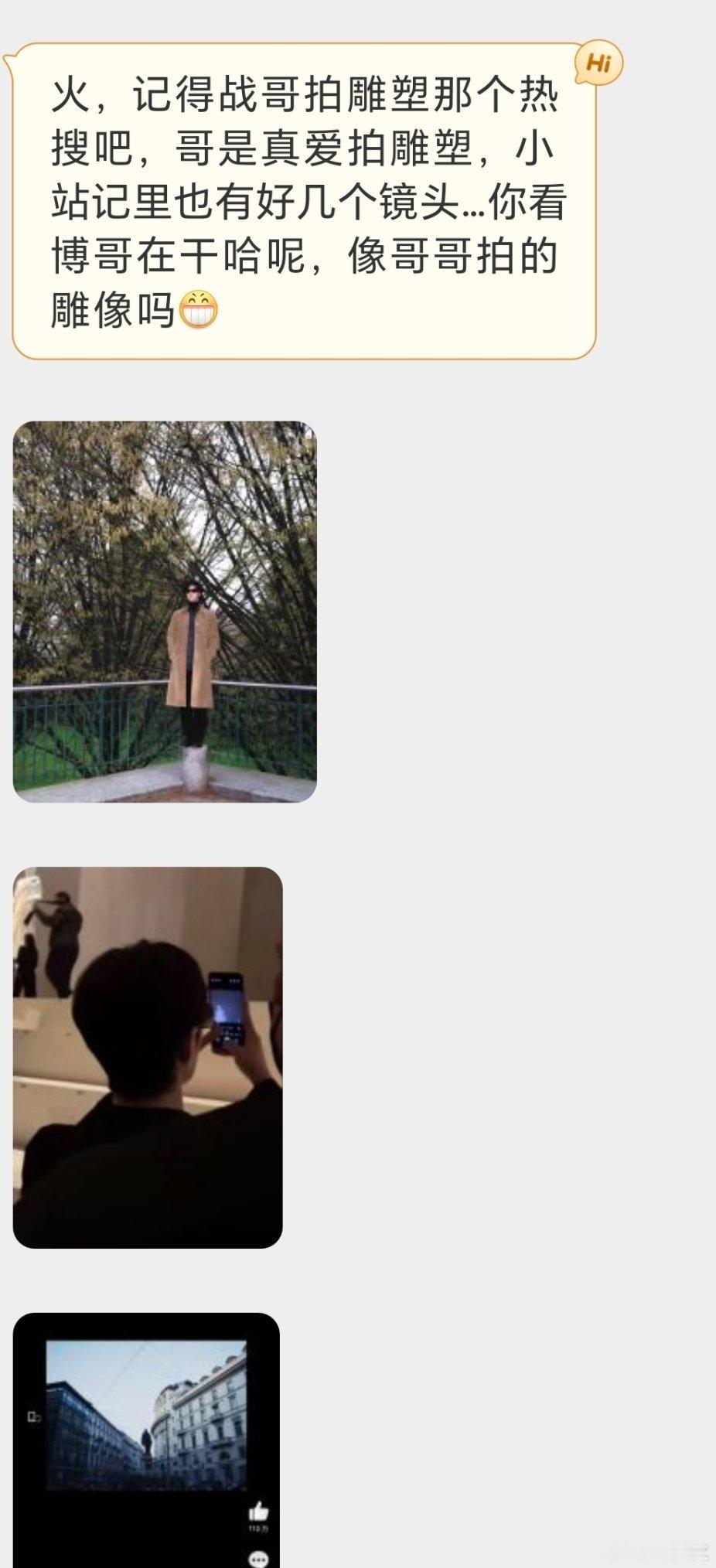大师我悟了!战战是很爱拍雕塑,各种拍,哪怕只拍腰部以上也要拍,vlog里常用雕塑转场。王啵站在那儿扮雕塑。。。就很会逗脑婆哦,隔空喊话,又是有迹可循