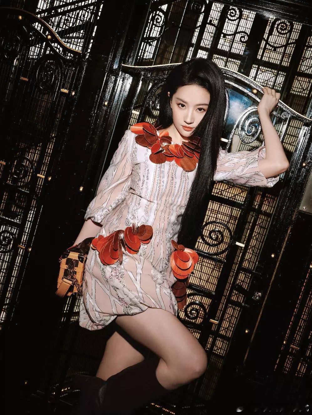 刘亦菲黑长直温柔氛围感拉满,一袭红调点缀又酷又飒,刚柔并济。