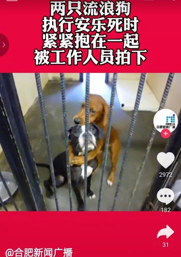 二只狗狗在被执行安乐死前紧紧的拥抱在一起!当地球没有其他任何动物时也改变不了尔虞我诈,勾心斗角,贪得无厌,违法犯罪!