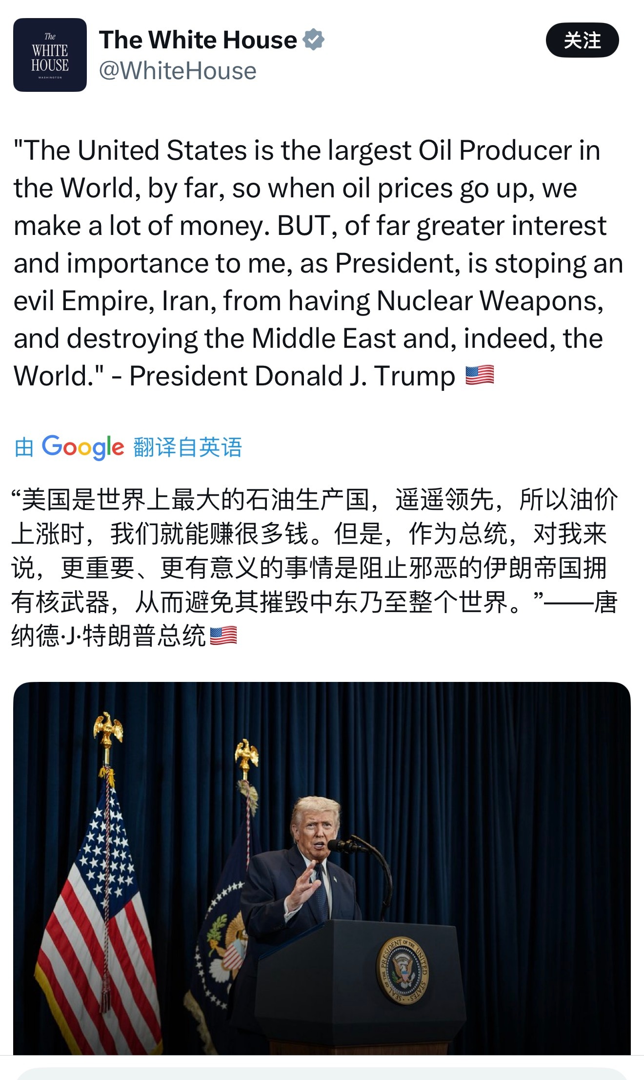 美国不装了,白宫直接说自己打伊朗后,石油涨价美国赚了很多钱…