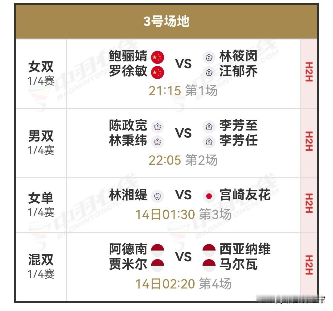 3月13日瑞士羽毛球公开赛1/4决赛安排 国羽昨日战绩为7胜2负。王正行连输两局,不敌金廷;郭新娃/陈芳卉历经三局苦战,被帕克卡波/沙西丽逆转淘汰,二人皆止步16强。 今日北京时间21:00起,将进行1/4决赛。对阵分别为李诗沣对阵王柏崴,李怡婧/王漪朵对阵岩永铃/中西贵映,详细对阵安排如图所示。 羽毛球 羽毛球爱好者 羽毛球基本规则有哪些? 国羽 李诗沣 羽毛球赛事 羽毛球比赛