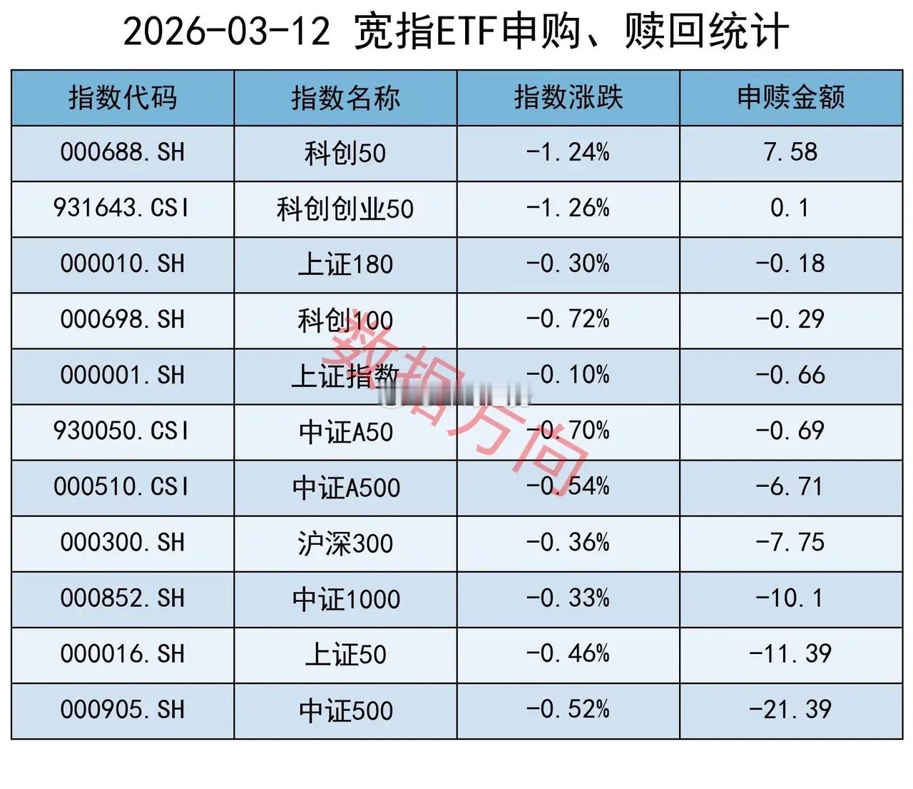 中证A50指数(-0.69亿)、上证指数(-0.66亿)、科创100指数(-0.29亿)、上证180指数(-0.18亿),分别被小幅净赎回。