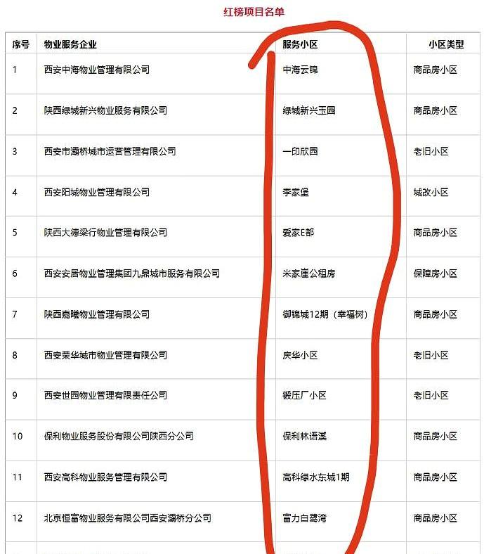 灞桥区物业红黑榜新鲜出炉! 你家小区上榜了吗? 我刚在官网看到这份名单,是社区和住建局一起评的。 红榜上有13家物业公司,大多是咱熟悉的牌子,比如绿城、中海、保利这些。 有意思的是,上榜小区不全是商品房,连庆华小区、锻压厂小区这些老小区也挤进去了,说实话挺让人意外的。 黑榜那边呢,河畔公馆、观澜天下等几个小区因为服务不到位、管理乱,业主不满意,直接被点名了。 现在买房啊,物业好坏太关键了。 服务跟不上,住进去尽是糟心事,说白了就是花钱买罪受。 物业服务好的小区,日子才过得舒心。 你家小区的物业咋样?评论区聊聊呗!
