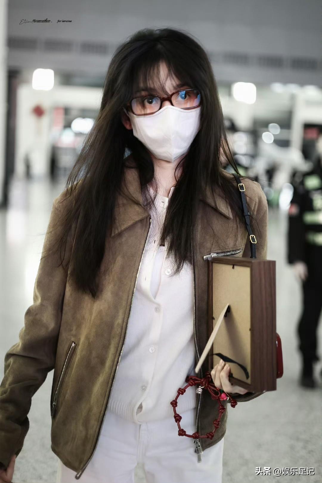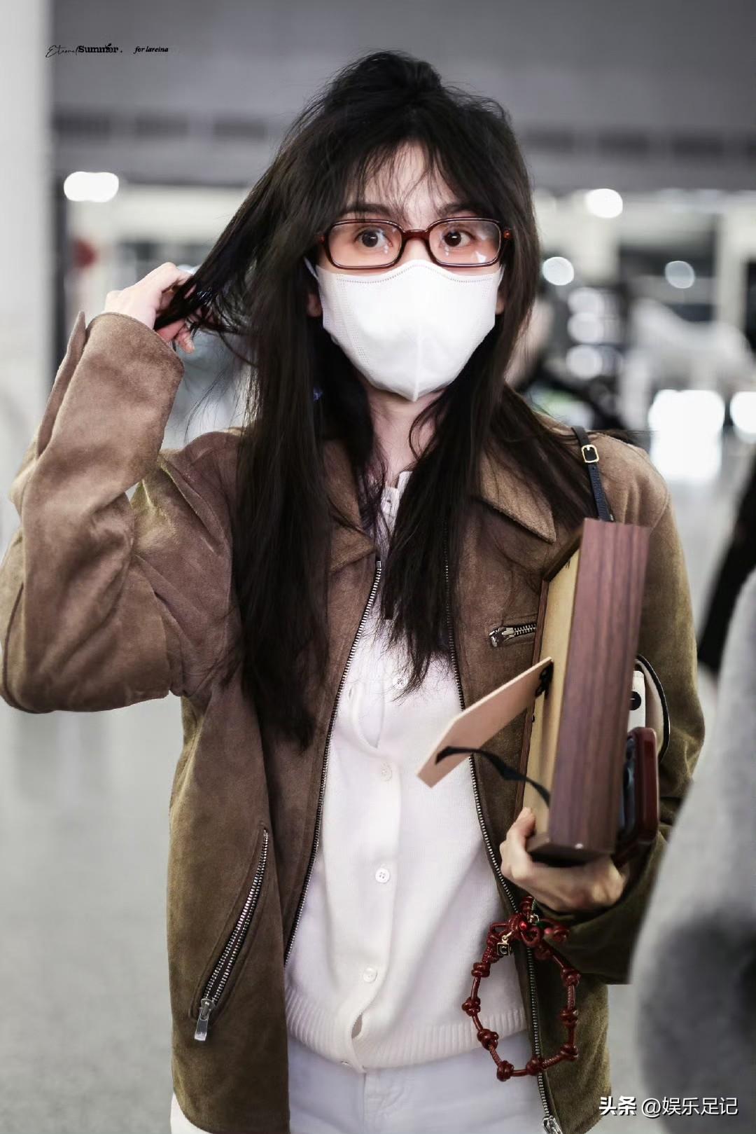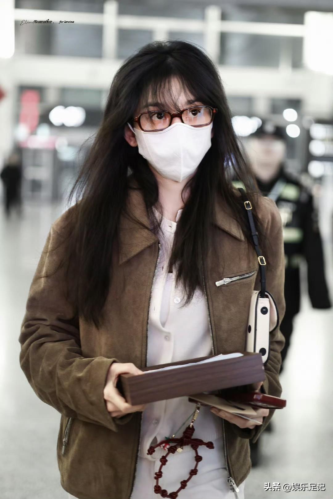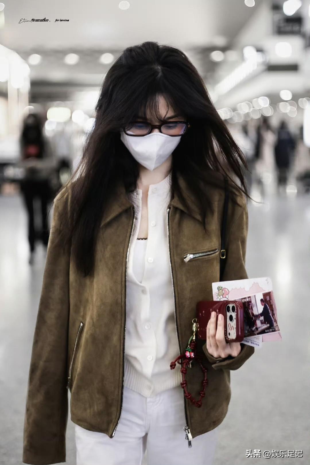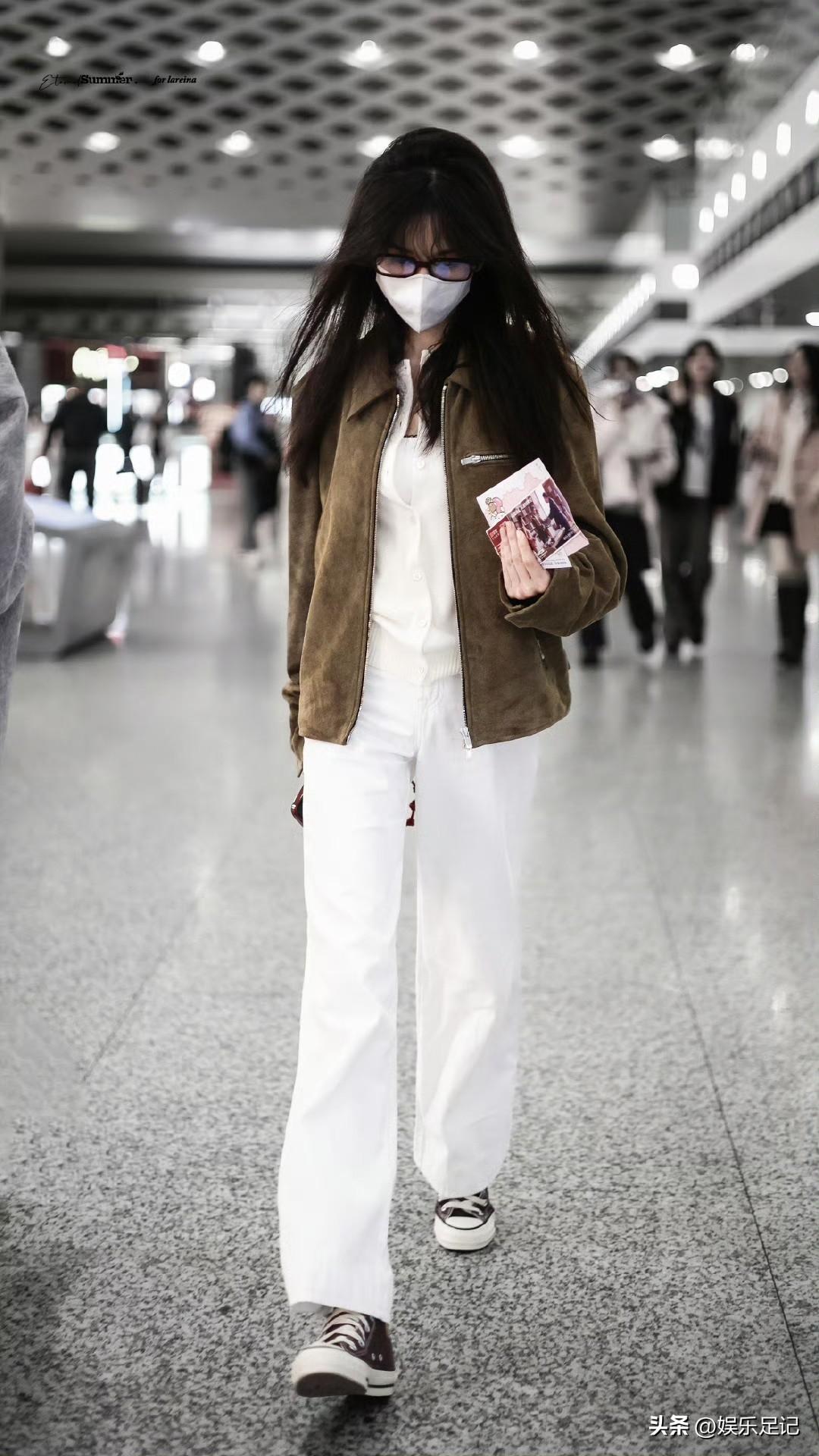 刘亦菲这条裤子挺养生,毕竟降温了肚脐眼必须护住啊
