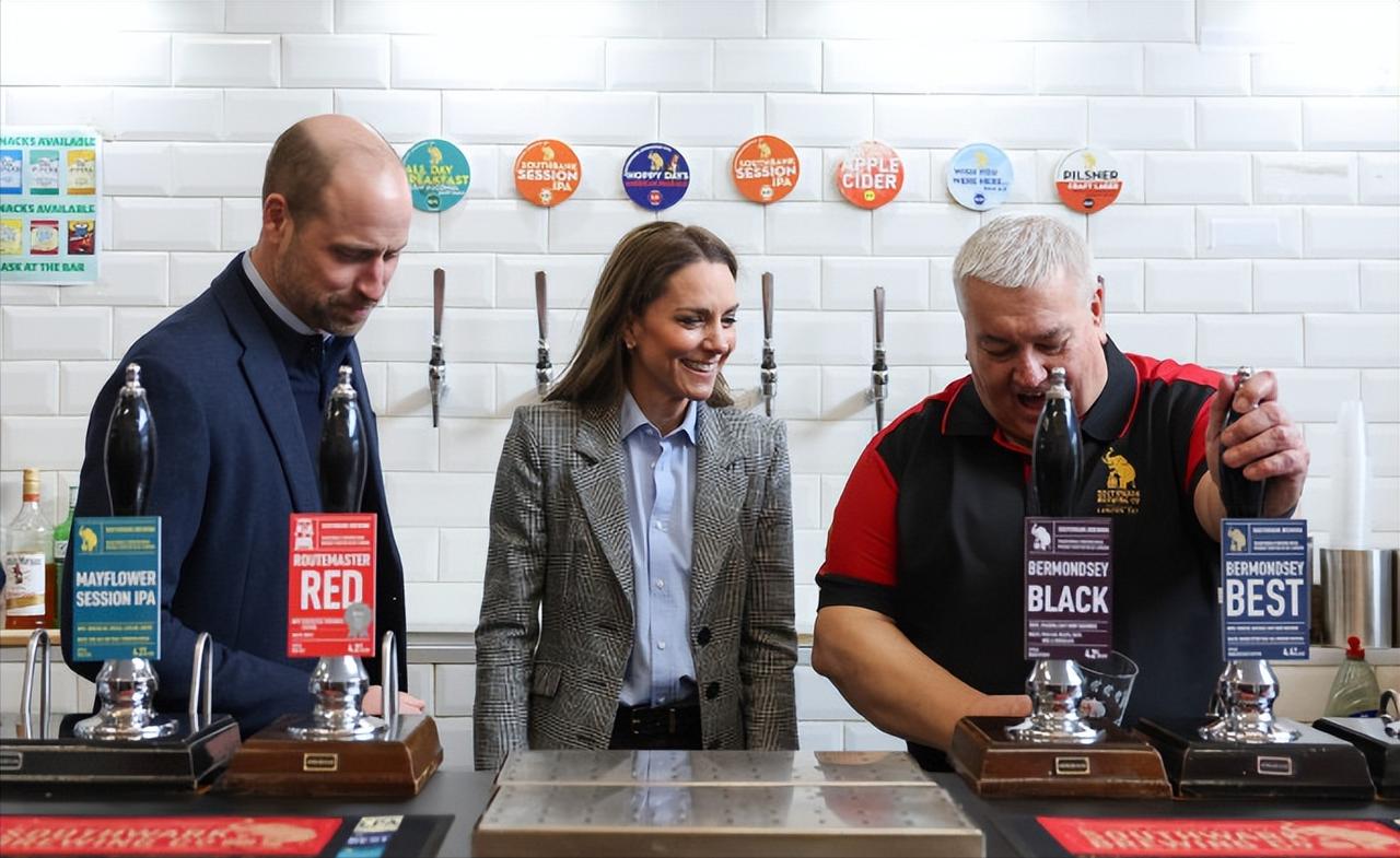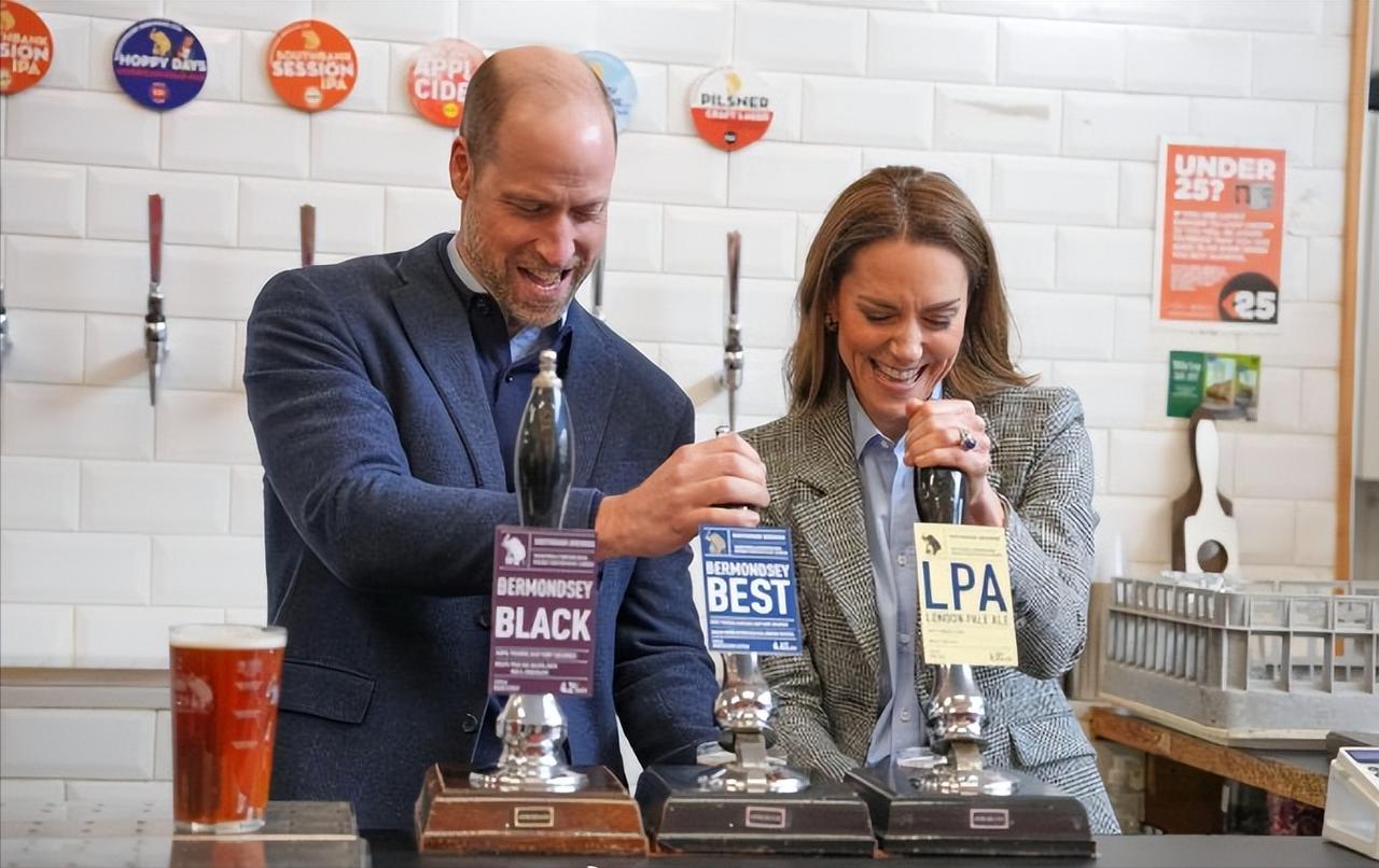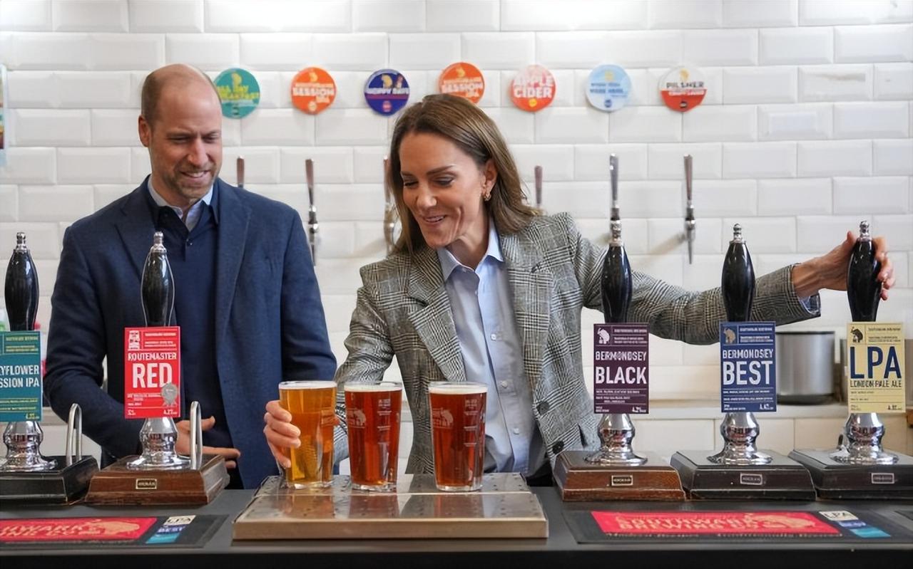3月12日,威廉王储和妻子凯特王妃再次携手营业,两人一同在伦敦访问了斯沃克特酿酒公司和法巴尔啤酒馆。 众所周知,这对王室夫妻在婚前可是酒吧常客,非常喜欢喝酒。 这次到访酿酒公司和啤酒馆,威廉王储和凯特王妃不仅和工作人员喝啤酒热聊,还一起亲自下场,参与啤酒的制作过程。 凯特王妃穿着灰色格纹小西装,拿着啤酒闻了闻,还和威廉一起盛满啤酒,夫妻俩都笑得很开心,这样的一幕,不知道会不会勾起两人那段恋爱的美好回忆呢?
