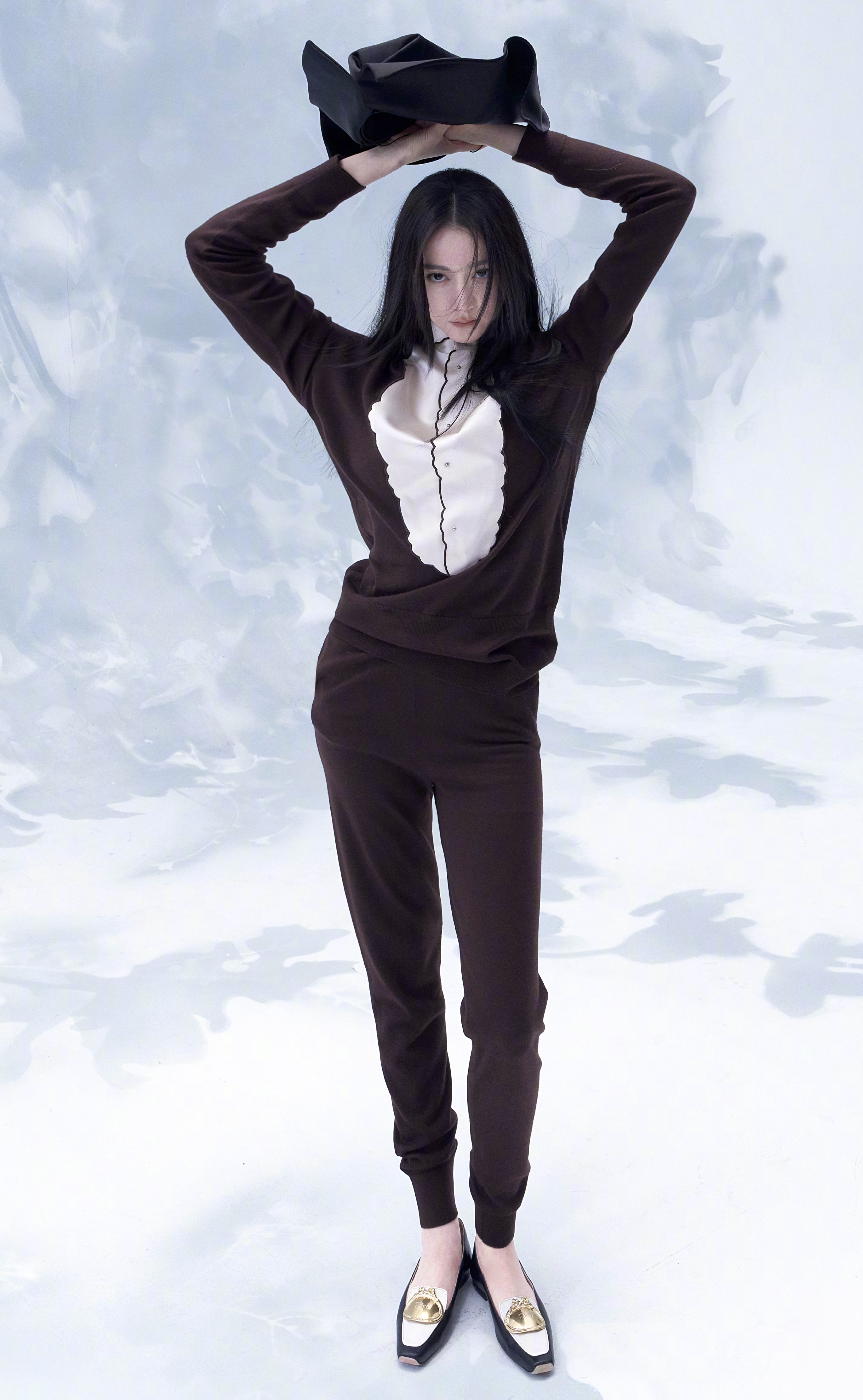 刘亦菲这条裤子挺养生,毕竟降温了肚脐眼必须护住啊