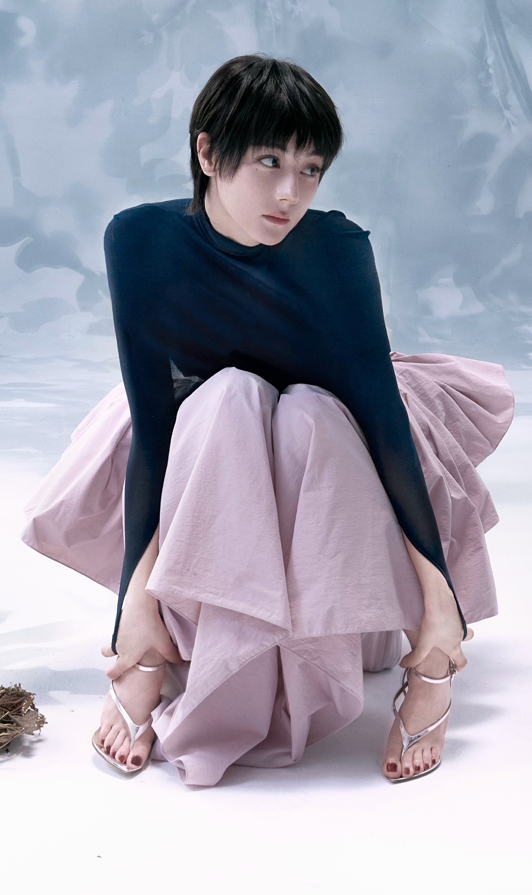 赵昭仪 赵昭仪黑丝诱惑银色一字带绑带细高跟
