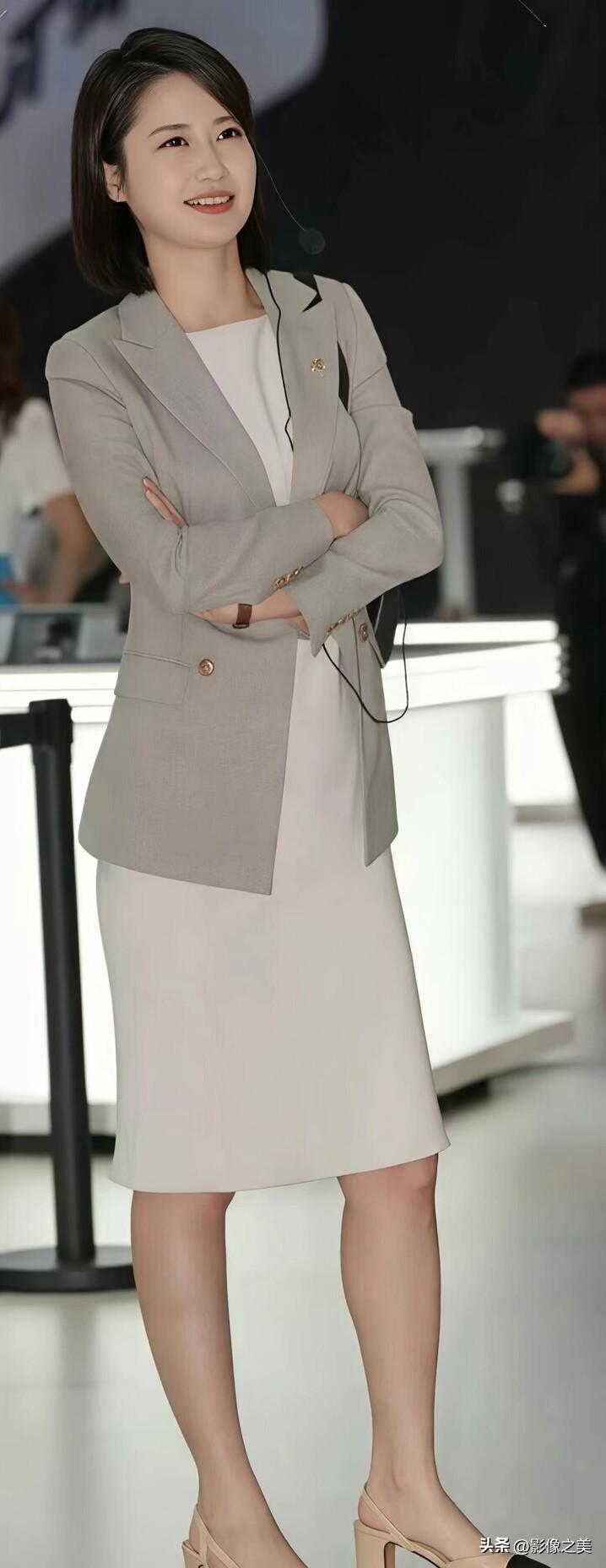 浅灰西装搭米白连衣裙,配色高级又利落。简约职场穿搭范本,尽显专业气场与温柔气质。