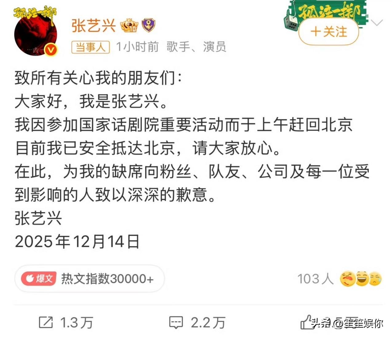 张艺兴因为没有编制,所以他参与商业活动的自由度相对比较高。但入职这种国家单位肯定有要求与限制,比如张艺兴去年底到韩国与香港都是需要报备的,所以张艺兴被紧急召回也与行程报备与单位调度有关。 娱乐圈向来无风不起浪,关于“一年之内演出停审”和“撤回档案脱离编制”的说法,等等看就有答案啦,艺人不可能长时间消失在公众视野的。