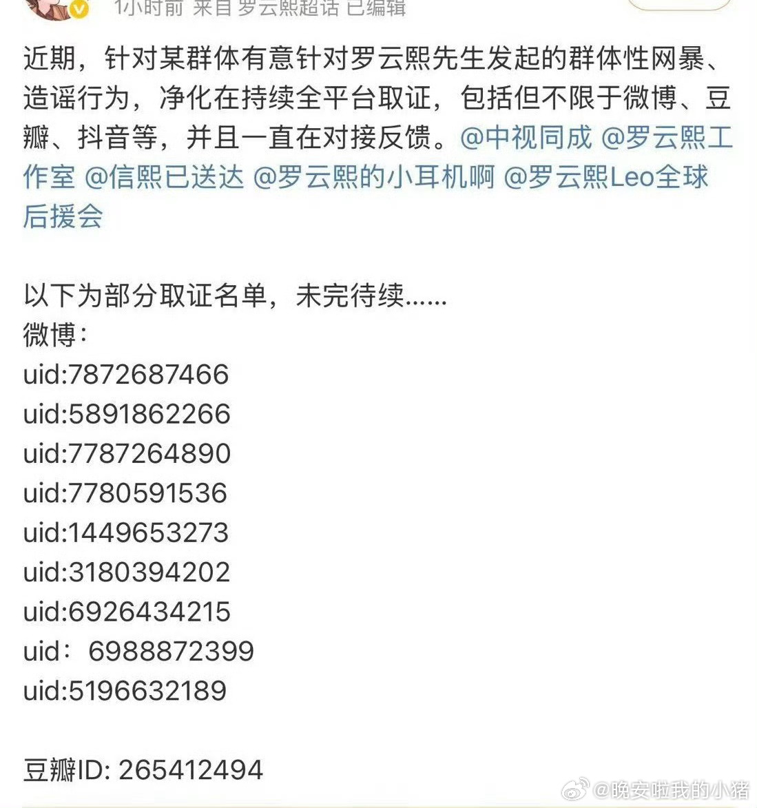 罗云熙方告嘿维权了