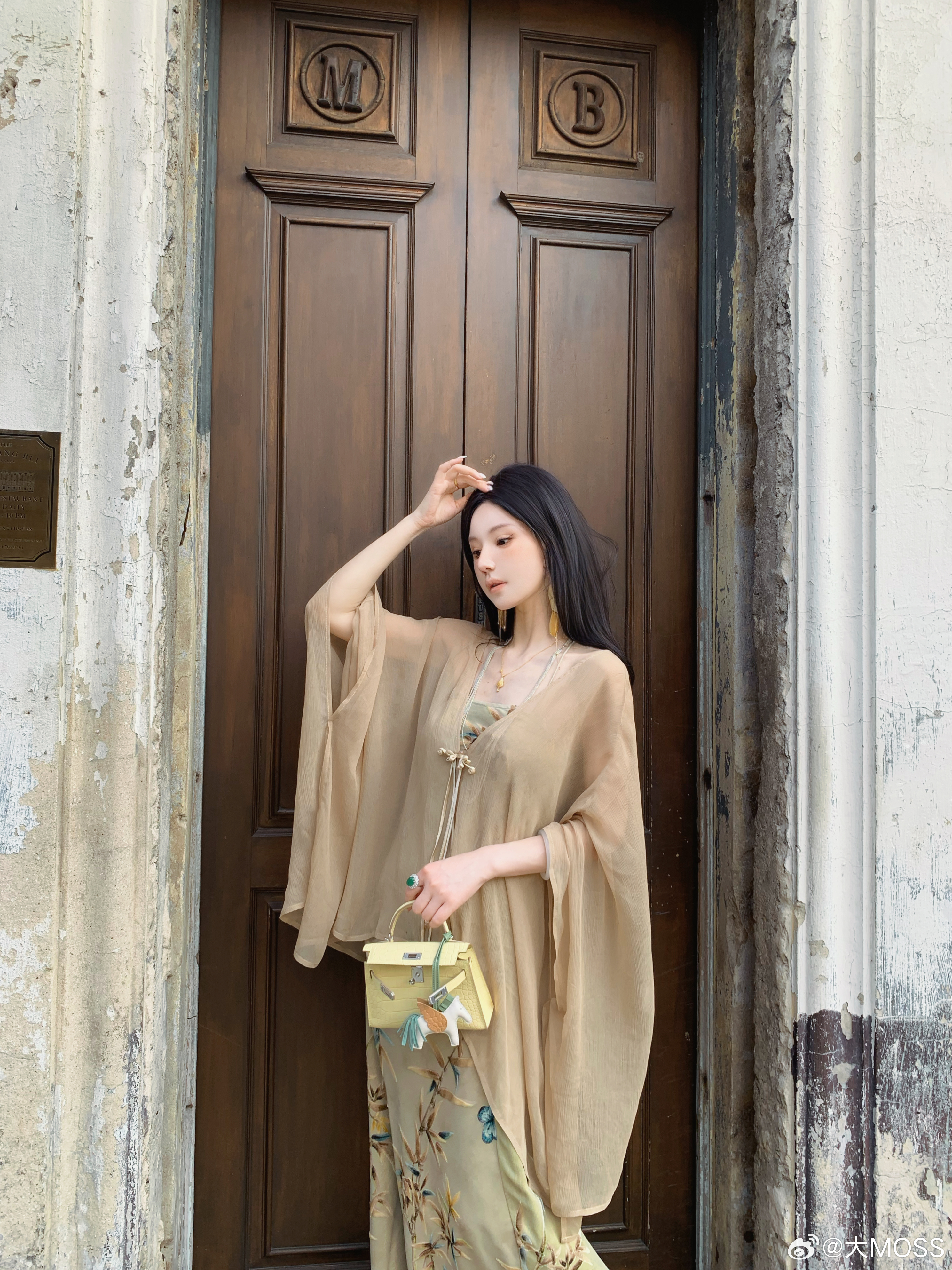 𝑴𝑶𝑺𝑺 𝟑.𝟏𝟓/𝟐𝟎:𝟎𝟎𝒑𝒎【竹影潇潇】🎋🎍🍵新中式人丝植绒烧花吊带连衣裙这款茶卡其色🍵新中式吊带连衣裙,修身吊带剪裁贴合身形,勾勒出柔美的腰臀曲线;点缀植绒烧花工艺的竹叶与蝴蝶纹样🦋竹叶的清雅与蝴蝶的灵动相互呼应,营造出诗意氛围,新中式韵味十足。新中式穿搭