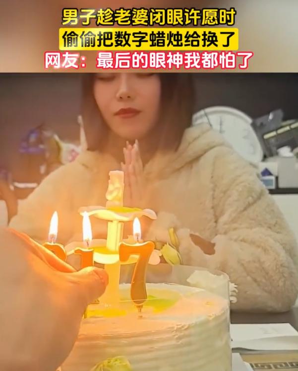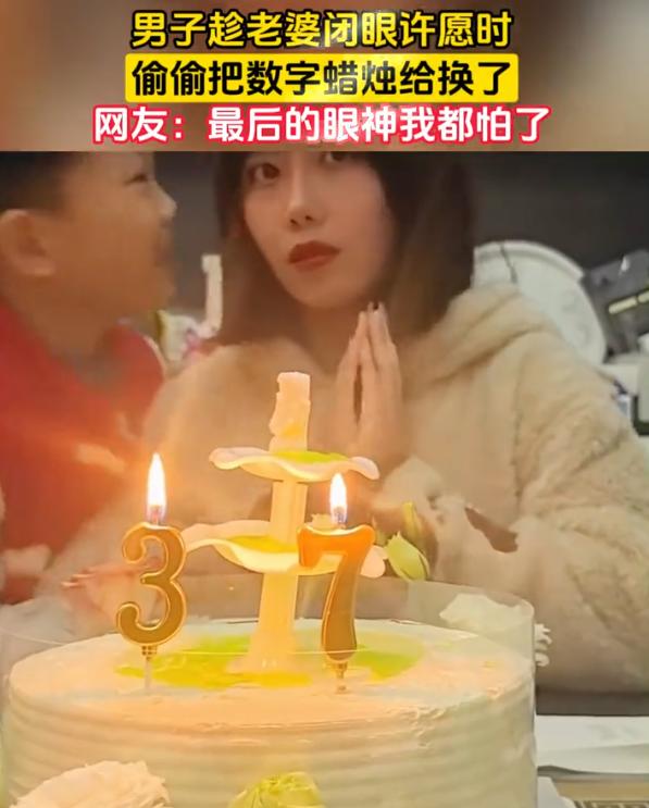 扎心了!一男子给老婆过生日,妻子为了显年轻,把生日蛋糕上的数字蜡烛插上“17”,谁知许愿的时候男子偷偷把1换成3,瞬间暴露了妻子的真实年龄,妻子许完愿睁开眼,直接来了个眼神杀 本来为了这次生日,一家三口准备了很多,男的特意订了个蛋糕,老婆把数字蜡烛插成17,图个永远十七岁的好彩头 一家人唱完生日歌,老婆闭眼许愿那会儿,男的偷偷把那个1给抽了,在旁边插上个3。十七秒变三十七。老婆一睁眼,脸上的笑瞬间冻住了 有网友调侃:许愿永远17岁,睁眼现实37,少女一下成大嫂,能不上火? 说真的,这事儿搁谁身上都得炸。女人对年龄这事,敏感程度不亚于男人对工资条。平日里问个岁数都得拐着弯,你这倒好,当着面儿搞这么一出 而丈夫这波操作,说白了就是典型的直男思维。他们总觉得这是幽默,是好玩儿,完全理解不了女人对年龄的敏感从哪儿来的。女人在意的不光是那个数字,更是数字背后代表的东西——青春、状态、吸引力 但话说回来,两口子过日子,玩笑开过头了就是雷。幽默感这东西,得建立在互相尊重的基础上。你以为你在逗她笑,其实你在踩她的雷