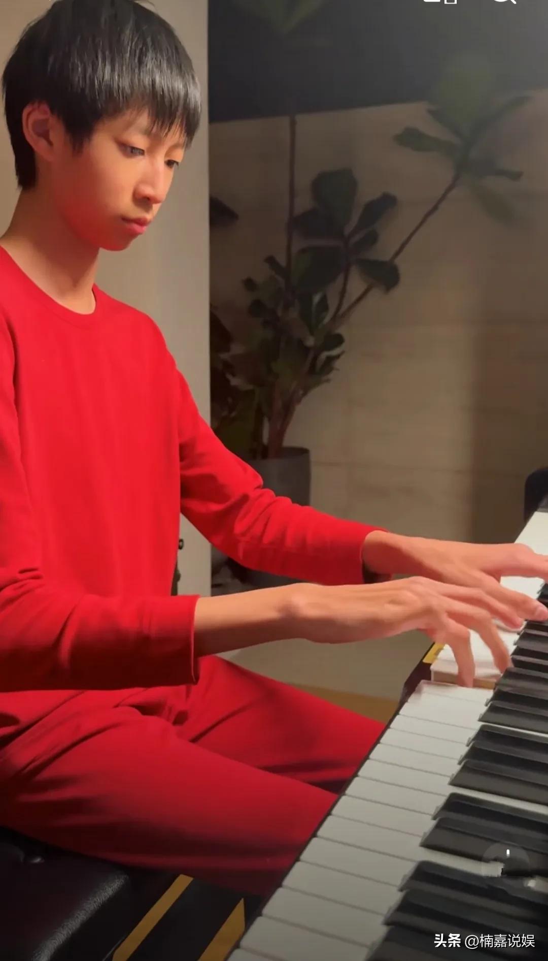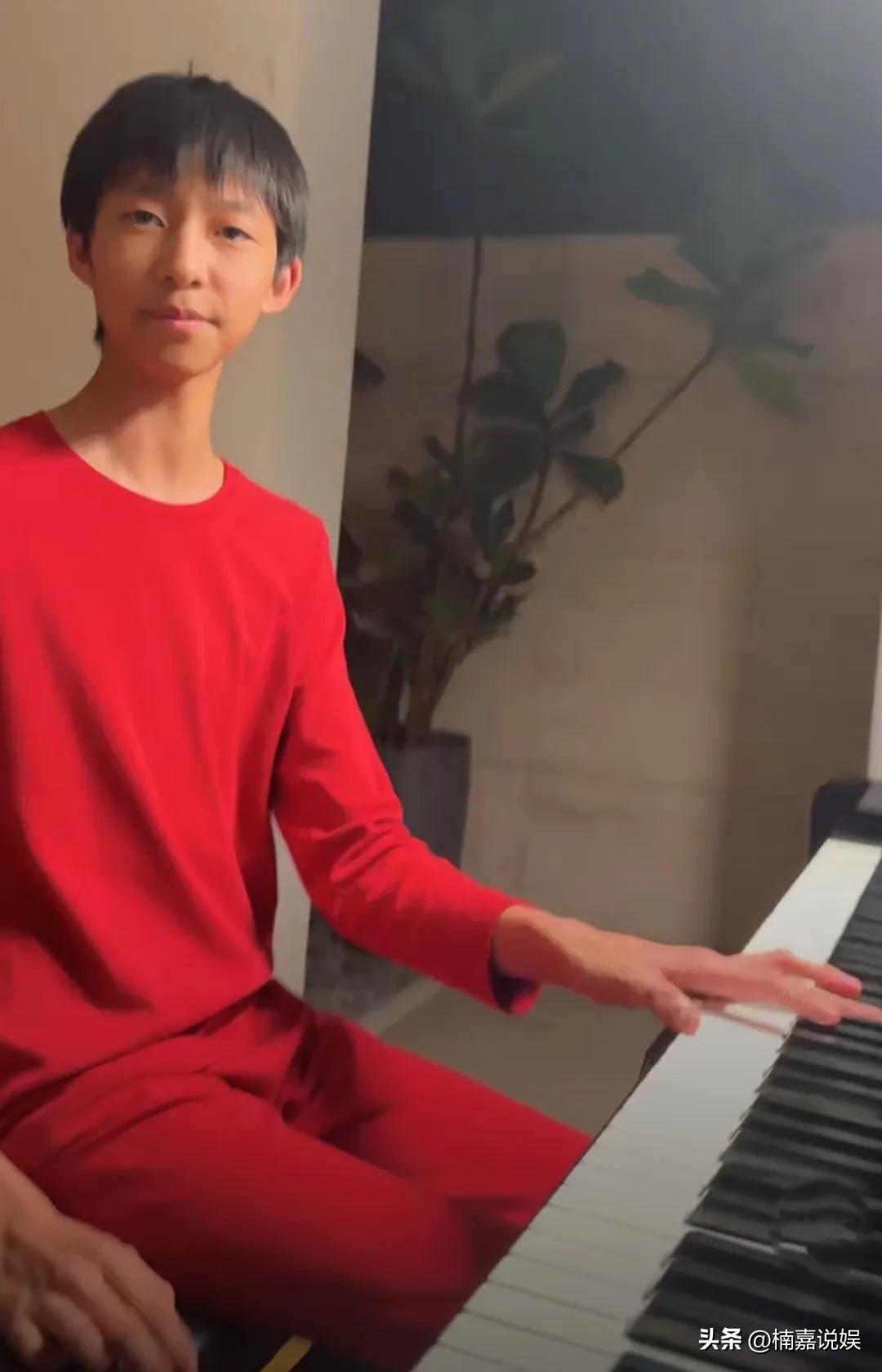 姚晨晒儿子小土豆弹钢琴的照片,这小子的手指头,真的是为弹钢琴而生的啊! 13岁的