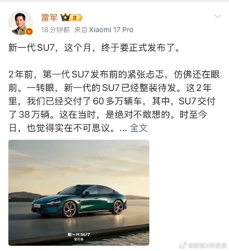 小米销量好,真不是卷出来的。不背刺老车主,看重口碑和用户体验,做事厚道,自然有底气从容。再加上新一代SU7又是全面升级,产品力实打实拉满。