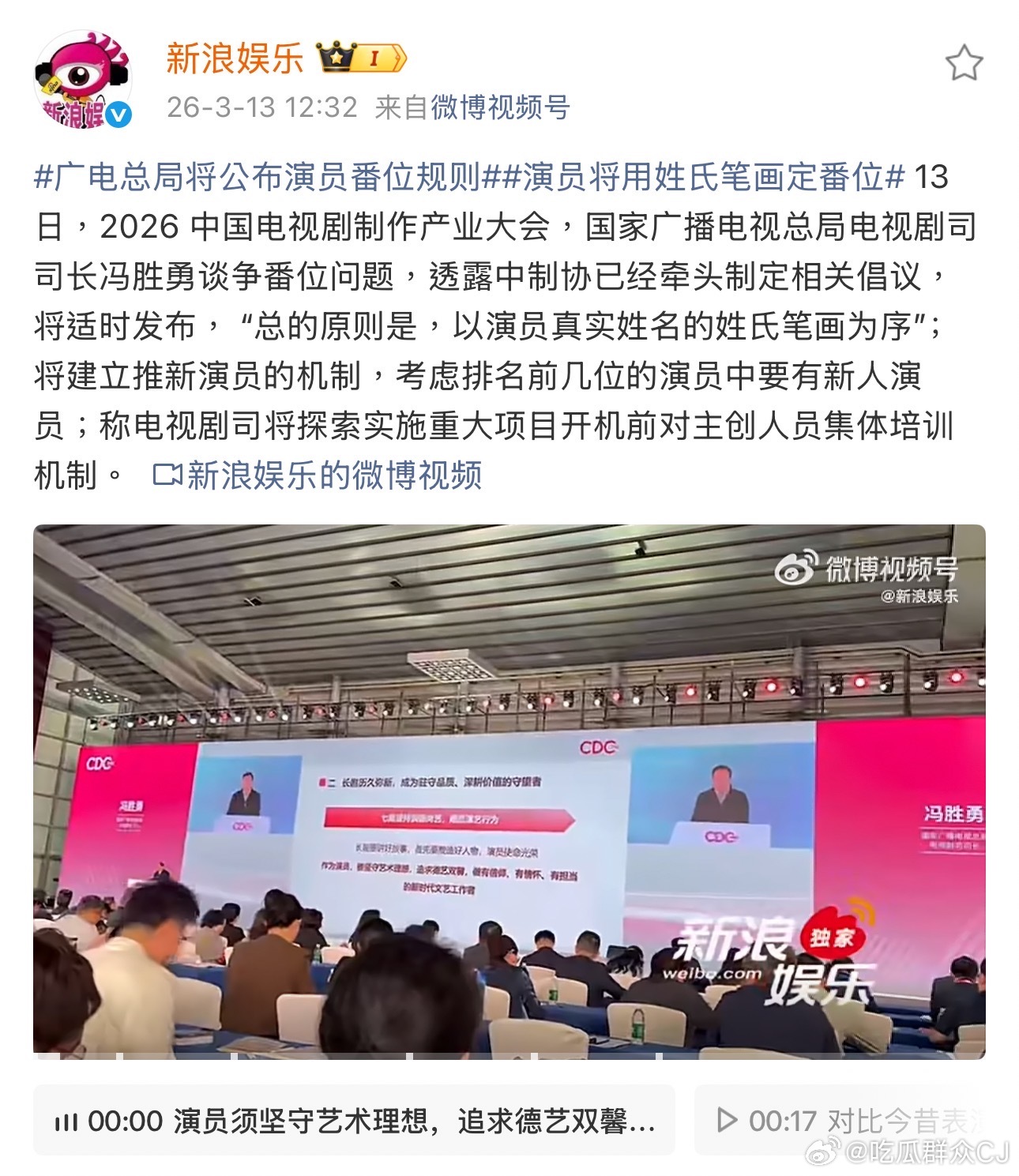 广电总局真的要整治番位问题,具体倡议还没发布,但总的原则是按演员真实姓名的姓氏笔画为序。