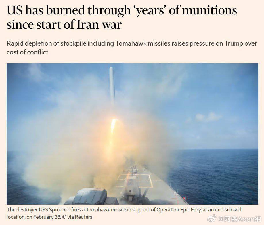 据英国《金融时报》报道,自伊朗战争爆发以来,仅仅13天,美国就已经消耗了相当于“数年”的弹药。
