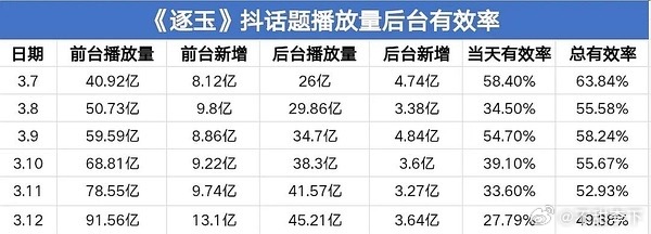 日推流播放量13亿,爆款视频只有轧戏的十分之一,有效率前所未有的新低27,抖人的