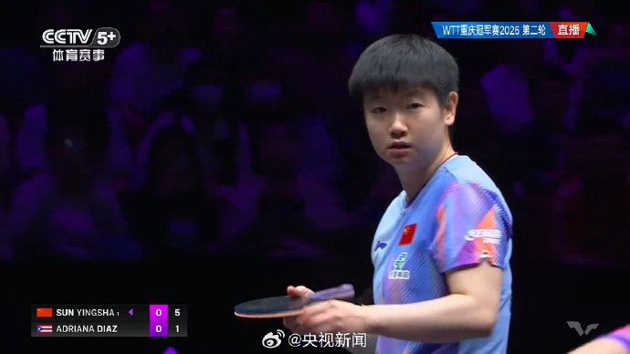 #孙颖莎二连胜#【#孙颖莎晋级女单8强#】2026WTT重庆冠军赛女单1/8决赛,3比0战胜波多黎各选手迪亚兹,晋级八强。一起为国乒加油,期待更多精彩表现! (央视新闻)