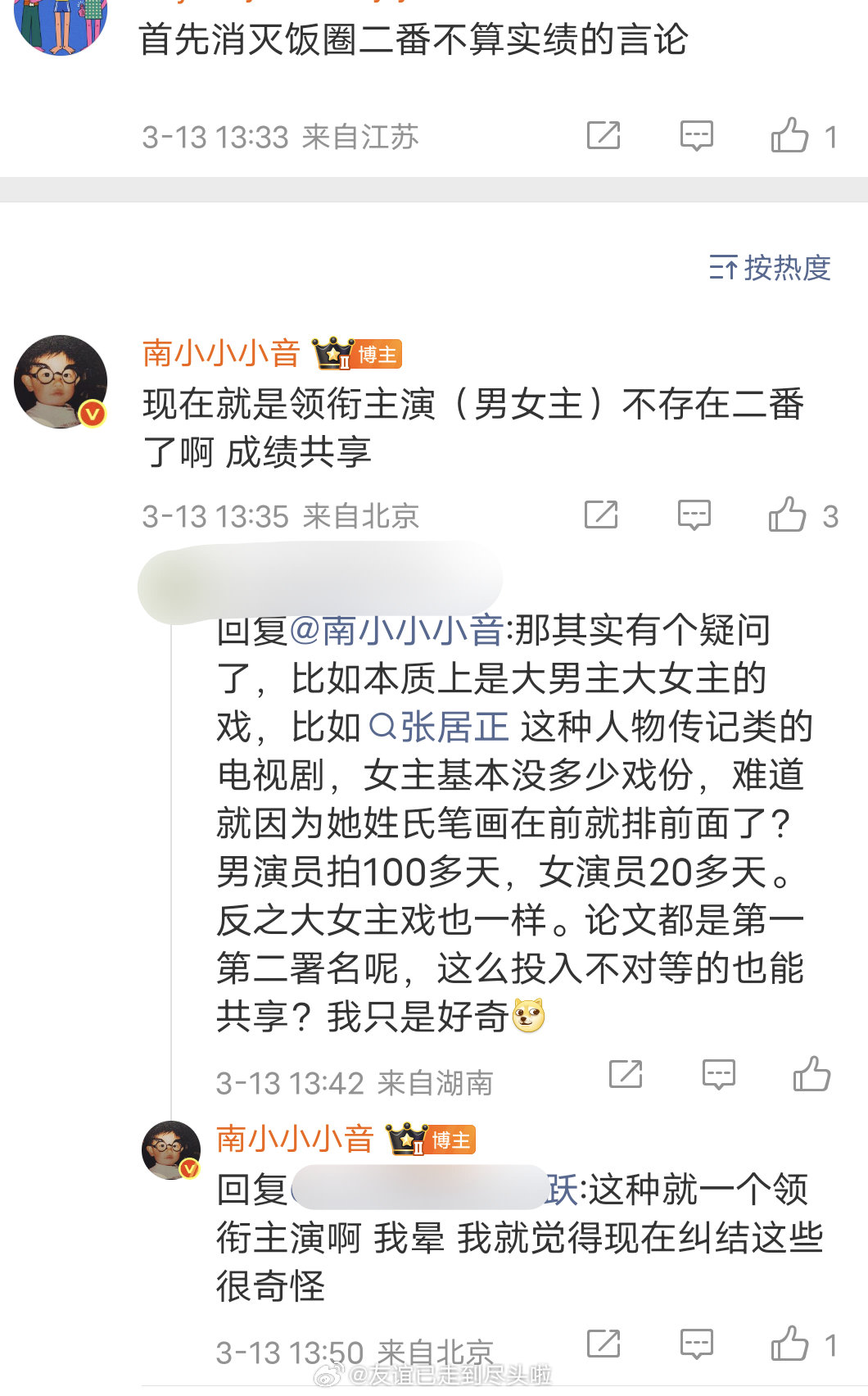 ☞领衔主演没有区别,不存在二番,成绩共享☞大男主和大女主的剧,只有一个领衔主演☞按领衔主演、主演、配角区分,姓氏笔画定番位广电总局将公布演员番位规则演员将用姓氏笔画定番位 番位规则