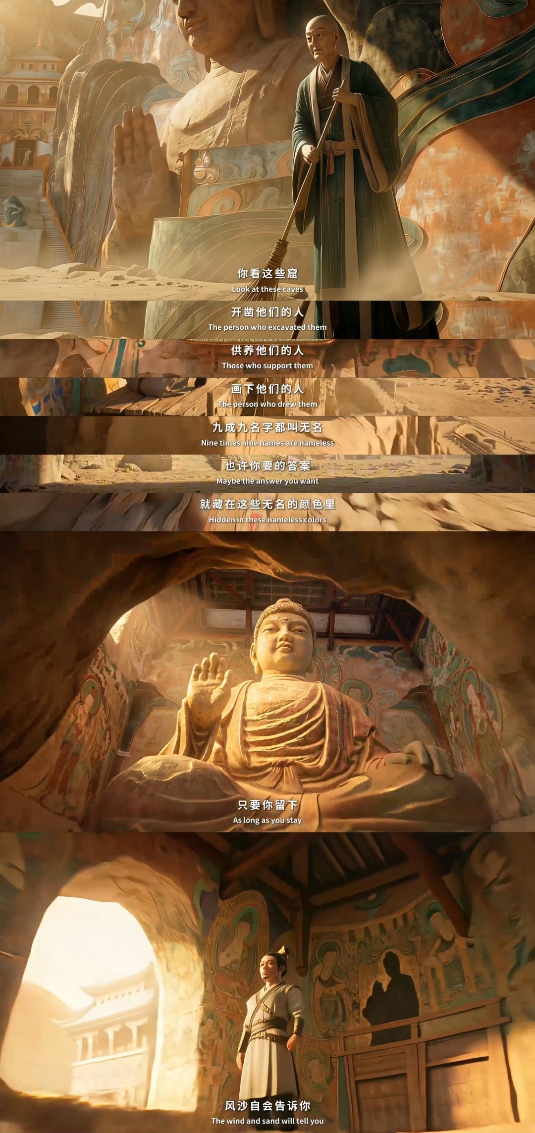 AI动画诞生以来最有用的一集《风沙中的召唤》直接把AI动画拉高一个档次!以敦煌为魂,让千年壁画在风沙中重生,跟着画师看见匠人一生坚守。意境、画面、叙事全在线,这不只是炫技,更是把国风美学做到极致,这才是AI真正有价值的打开方式!
