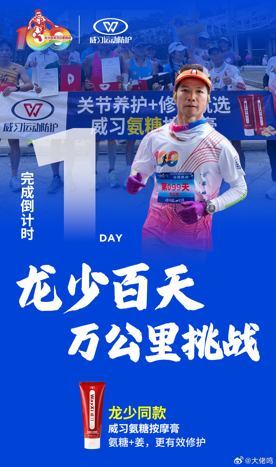 【百天万公里 挑战极限 龙少以无畏壮举书写全民健身新风采】百天万公里,挑战极限!极限挑战者龙少以非凡毅力与坚定信念,向着吉尼斯纪录发起冲击,用脚步丈量热爱,以坚持诠释力量,书写全民健身时代的动人篇章。当下,全民健身热潮涌动神州大地,运动健身成为越来越多人的生活选择。从专业赛场到城市街巷,从户外山野到社区球场,全民参与、全民健康、全民快乐的生动图景徐徐展开。龙少“百天万公里”极限挑战,正是全民健身浪潮中一次极具勇气的个人实践,是对人类体能与意志边界的勇敢探索,更是对健康生活理念的硬核传递。这是一场与自我的较量,更是一次对精神的淬炼。连续百天、累计万里,意味着日复一日的高强度奔跑、超乎常人的体能消耗,以及随时可能出现的身体疲惫与挑战。没有捷径可走,没有退路可言,唯有以恒心为友,以坚持为伴,一步一步向前,一米一米突破。在漫长征程中,他用日复一日的坚守,打破常人眼中的“不可能”,让更多人看到:极限并非遥不可及,热爱可抵万难,坚持终有回响。这场挑战,始终以科学运动、专业防护为支撑。全程由威习运动防护体系保驾护航:威习冷喷快速降温镇痛,为高强度运动提供即时守护;威习舒缓膏深度放松肌肉、缓解疲劳,助力身体持续保持良好状态;威习氨糖按摩膏靶向养护关节,兼顾日常保养与损伤修护,以科学手段为极限挑战筑牢安全防线,也向大众普及“科学健身、安全运动”的重要理念。挑战不止于突破纪录,更在于点燃大众运动热情。龙少以亲身实践告诉人们,健身无关年龄、不分场地,不必追求极致挑战,却可心怀热爱、坚持向前。他用脚步带动更多人走出家门、走向户外,感受运动的快乐,体会坚持的力量,让“崇尚健身、参与健身”的理念更加深入人心,让全民健身的氛围更加浓厚。从个人壮举到全民共鸣,从极限挑战到精神传递。“百天万公里”不仅是一次对吉尼斯纪录的冲击,更是一场全民健身的生动示范。在追求健康与美好的道路上,每一份坚持都值得致敬,每一次出发都充满力量。愿更多人以运动为翼,以健康为伴,在奔跑与坚持中遇见更好的自己,共同绘就新时代全民健身的壮阔画卷。鸣聊体育