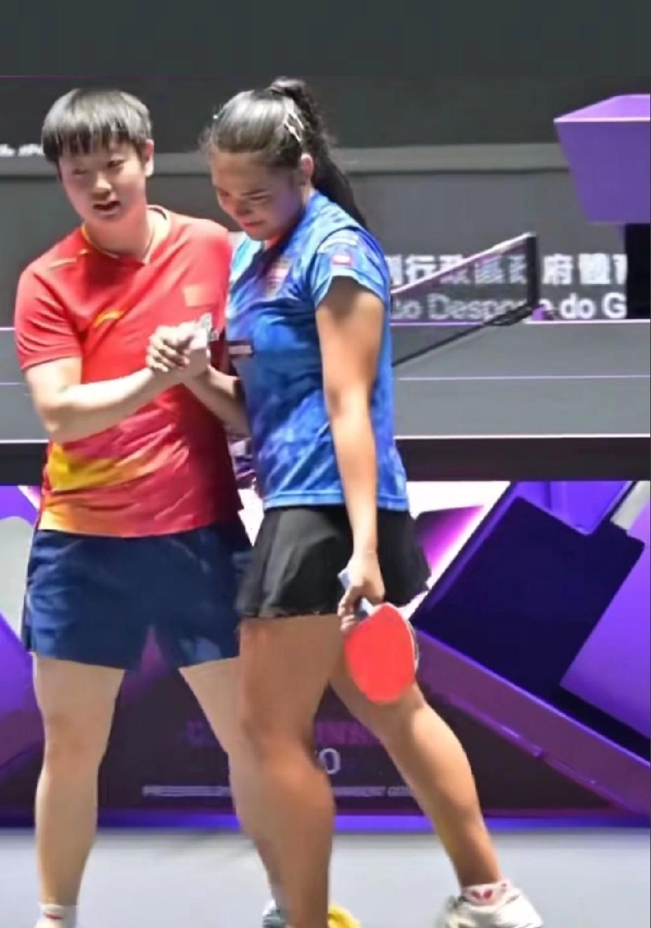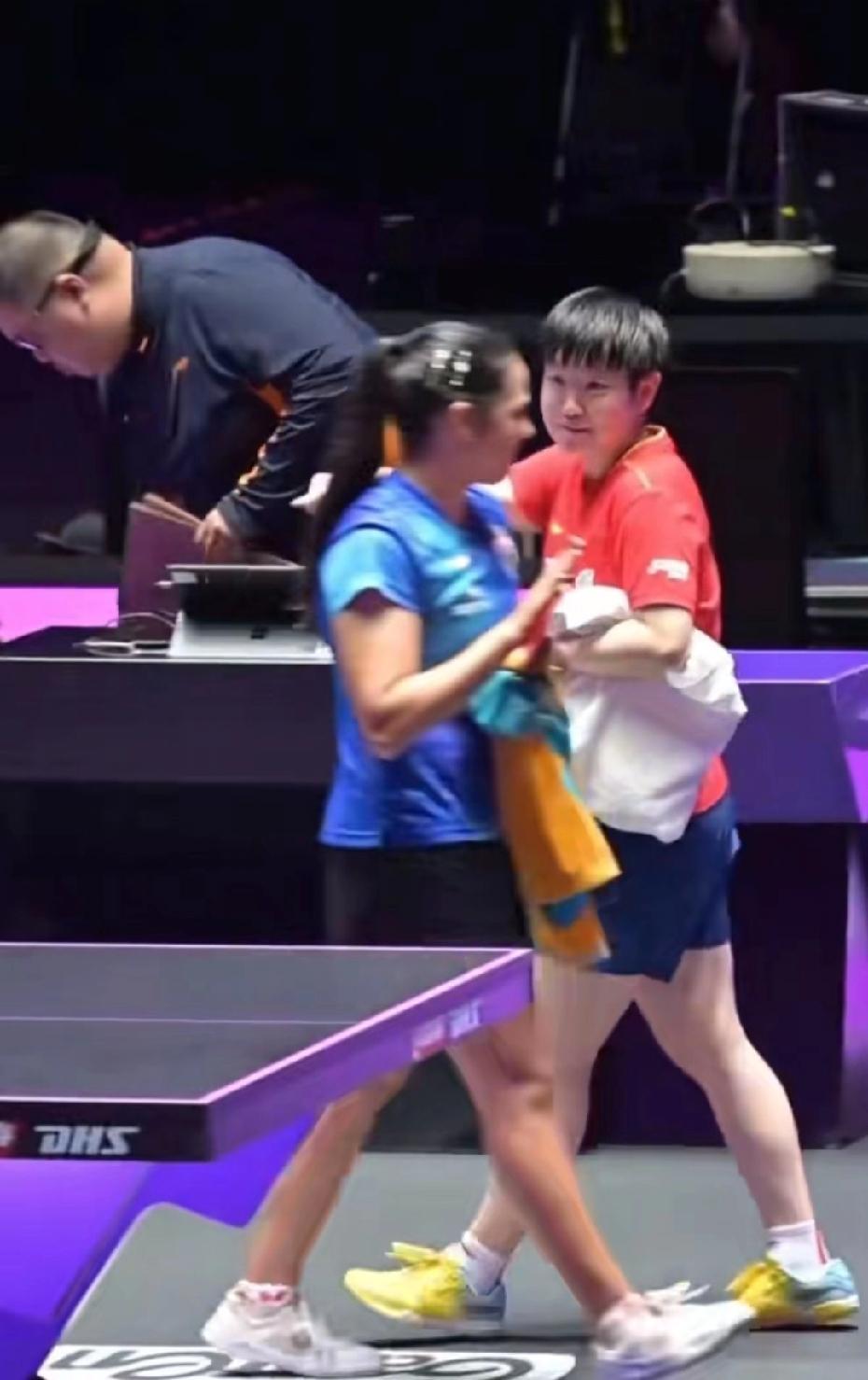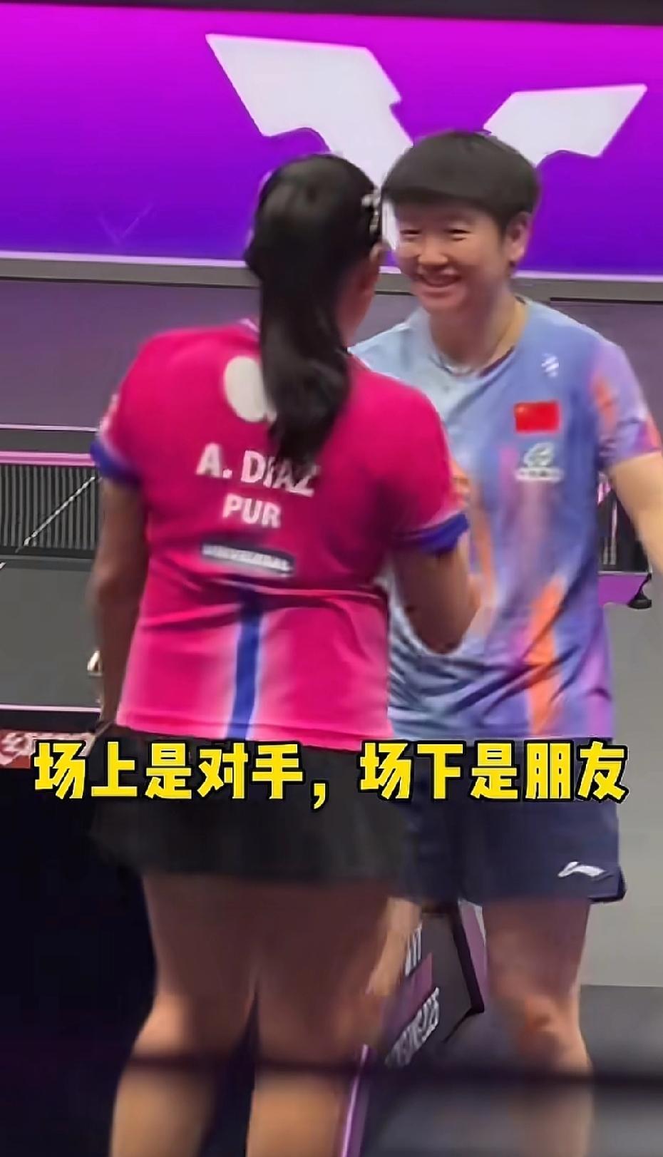 没有什么披头散发哦!今天莎莎赢的相对轻松!莎莎3-0迪亚兹,晋级八强!没有像想象中那样天雷撞地火般激烈, 应该说在莎莎的节奏和掌控中!莎莎赢球后,立刻不好意思的笑了 说sorry.sorry哄迪亚兹开心,今天莎莎打得超狠!好闺蜜场上对手 ,场下朋友!莎宝今天干脆利落速战速决 [比心] 孙颖莎,3-0迪亚兹,晋级八强! 比分:11-5;11-7;11-5 迪亚兹:为什么受伤的总是我! 迪亚兹:都说咱俩是好朋友好姐妹,你每次都这样打我合适吗[呲牙] 还一次比一次凶! 莎莎:走请你吃火锅,一顿不行,就两顿! 哈哈,外协会的球员对莎莎也是很喜欢,尤其迪亚兹,还在河北省队练过球! 下一场,莎莎将对阵小曼姐,国乒德比之战,输赢怎样都好! 莎莎保护好自己,健康完赛[比心] 记录我的2026 乒乓球