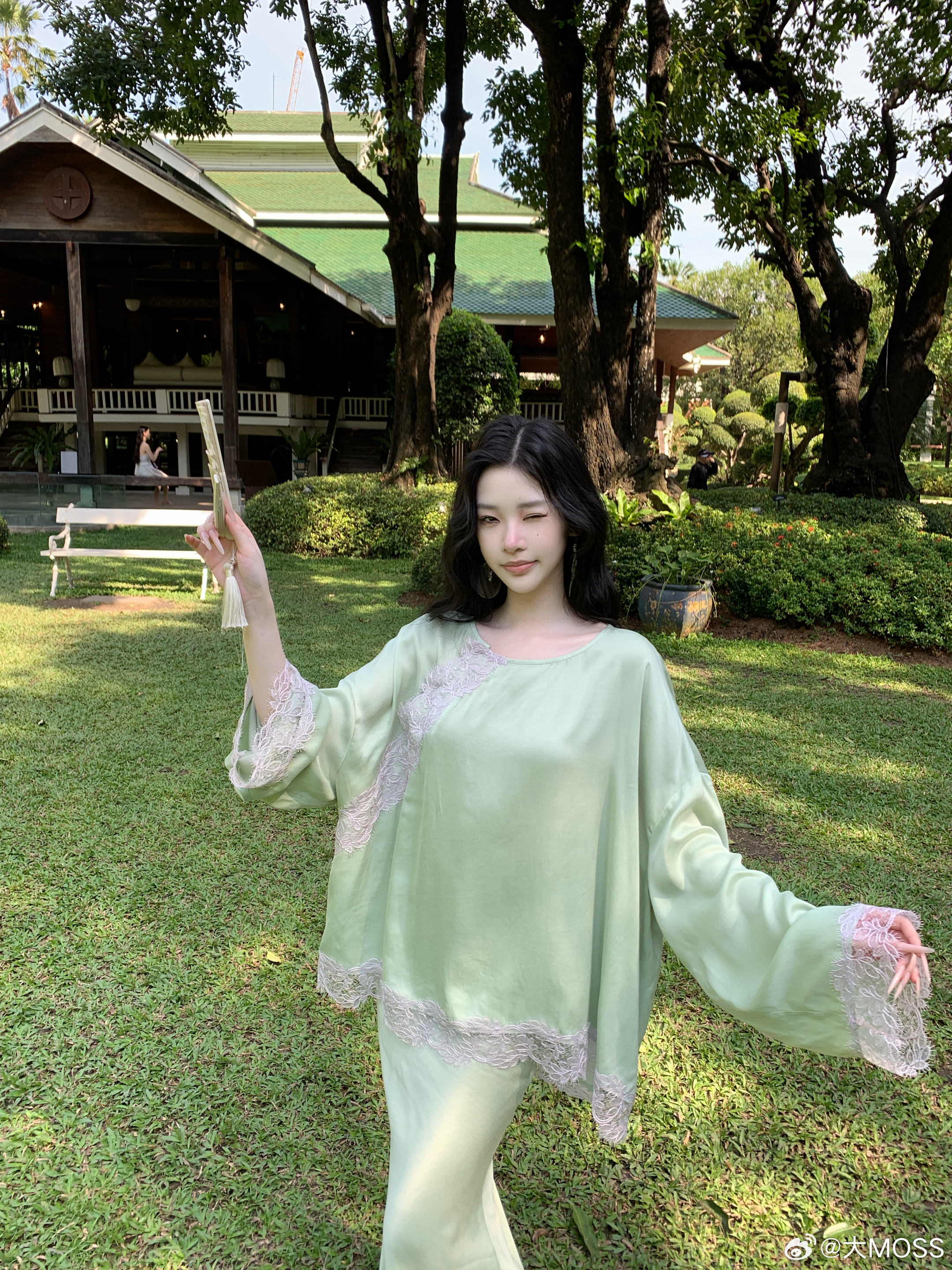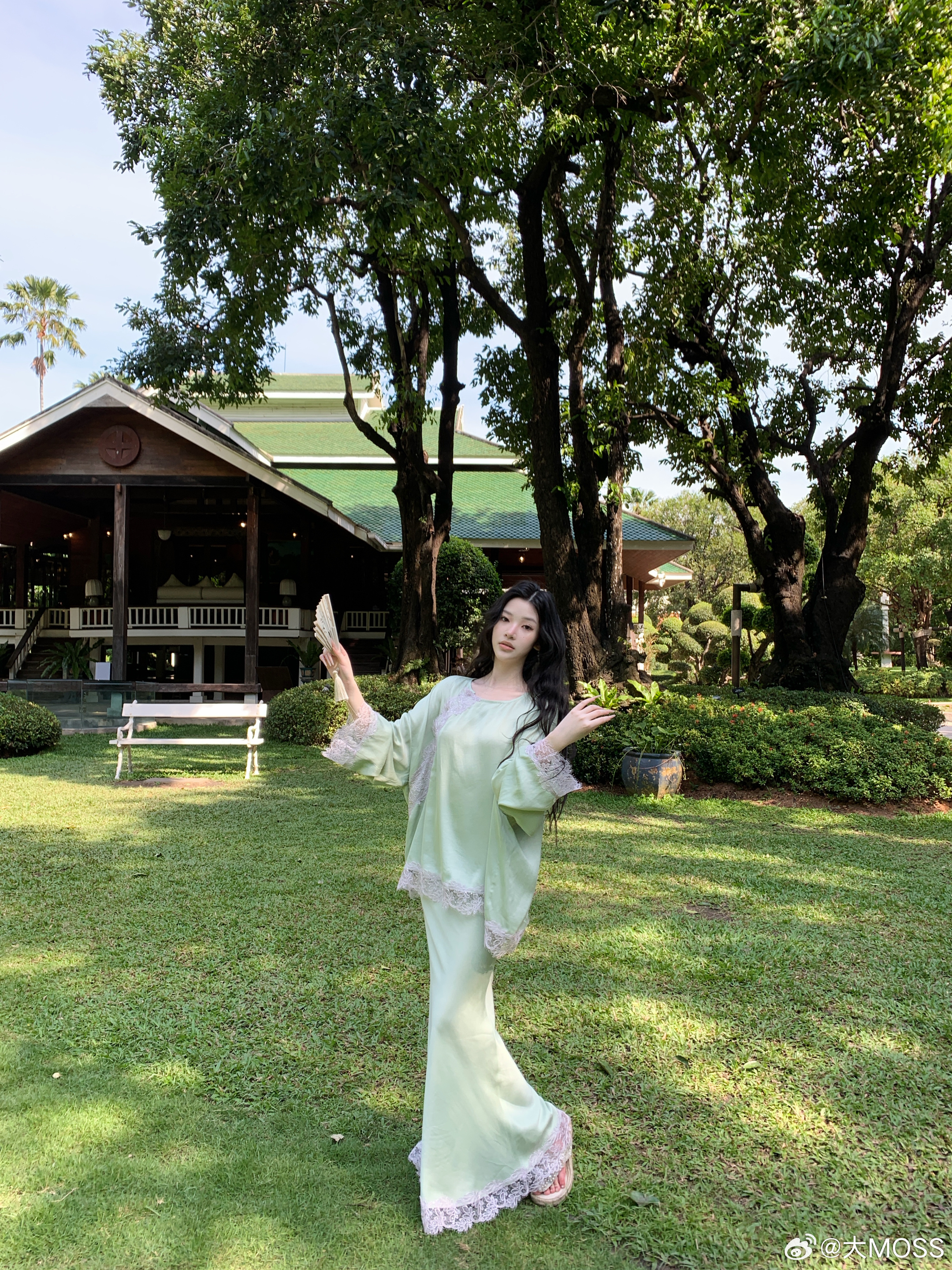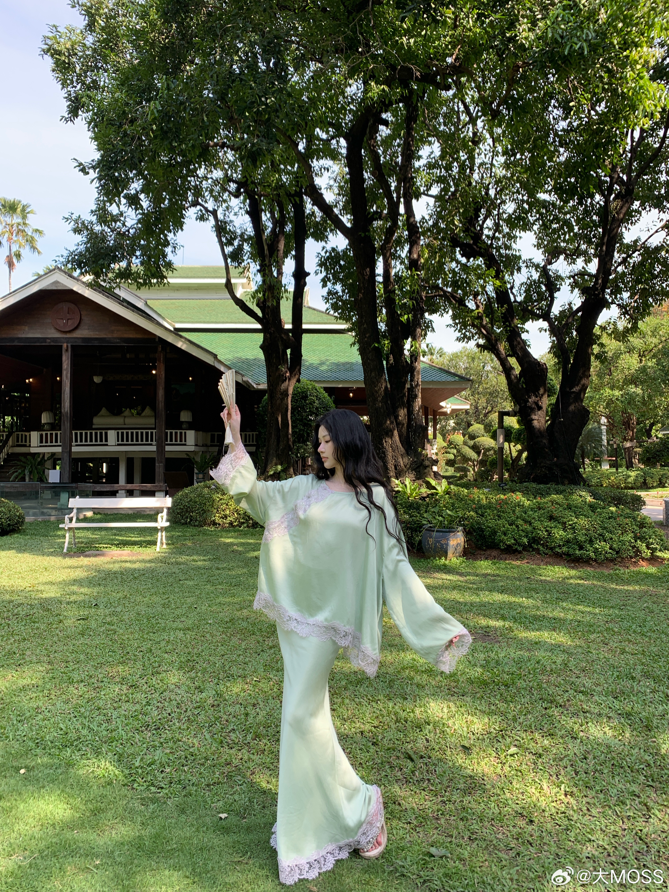 𝑴𝑶𝑺𝑺 𝟑.𝟏𝟓/𝟐𝟎:𝟎𝟎𝒑𝒎【此间春色】🍃🌿新中式拼接蕾丝铜氨上衣+半裙套装薄荷绿铜氨上衣以新中式松弛感为核心设计理念,睫毛蕾丝拼接是点晴之笔,如流水蜿蜒般呼应中式美学的流动感。衣摆与袖口的不规则蕾丝毛边,打破了纯色的单调,增添了浪漫随性感。裙身整体保持纯色的简约干净新中式穿搭
