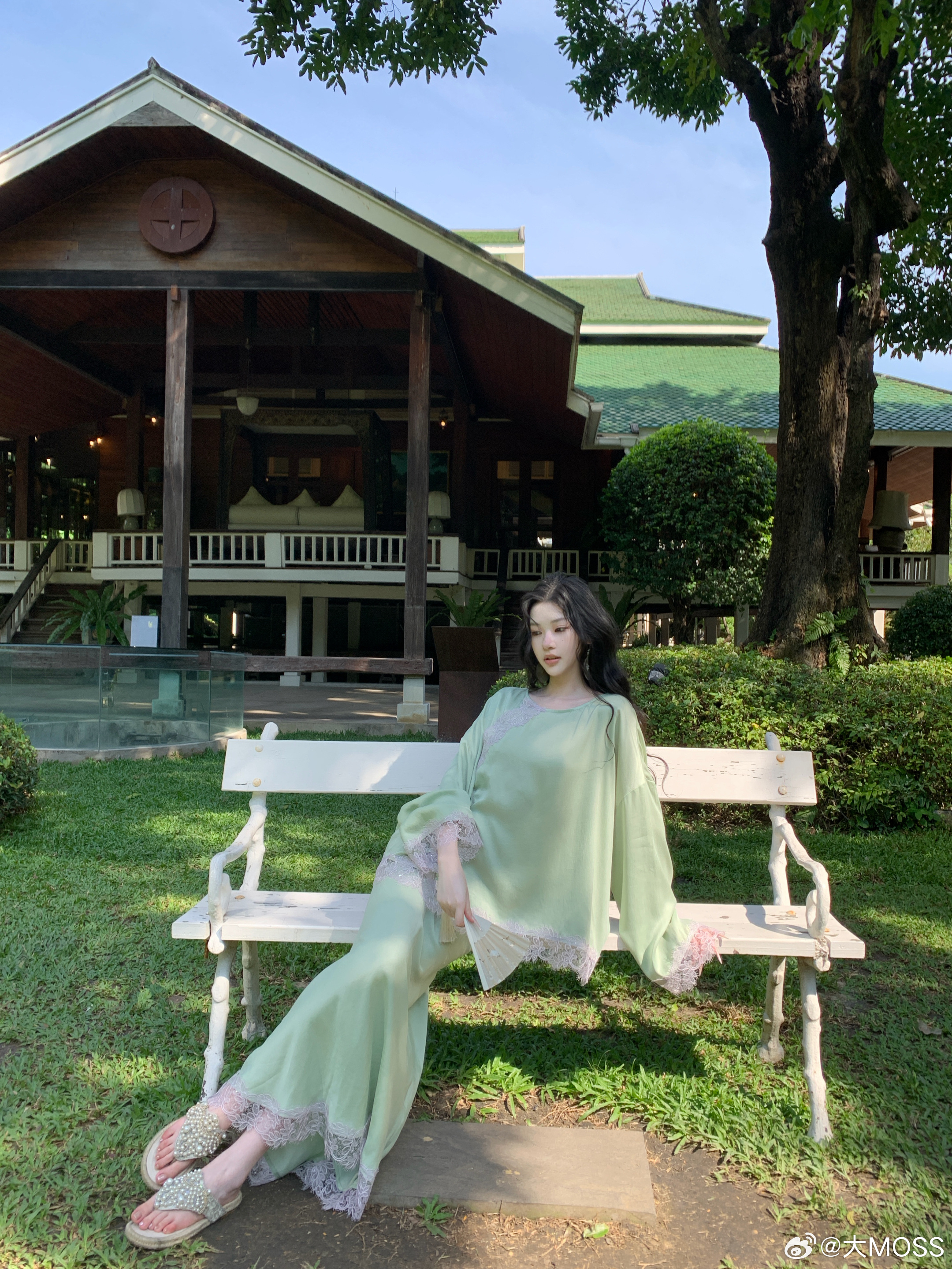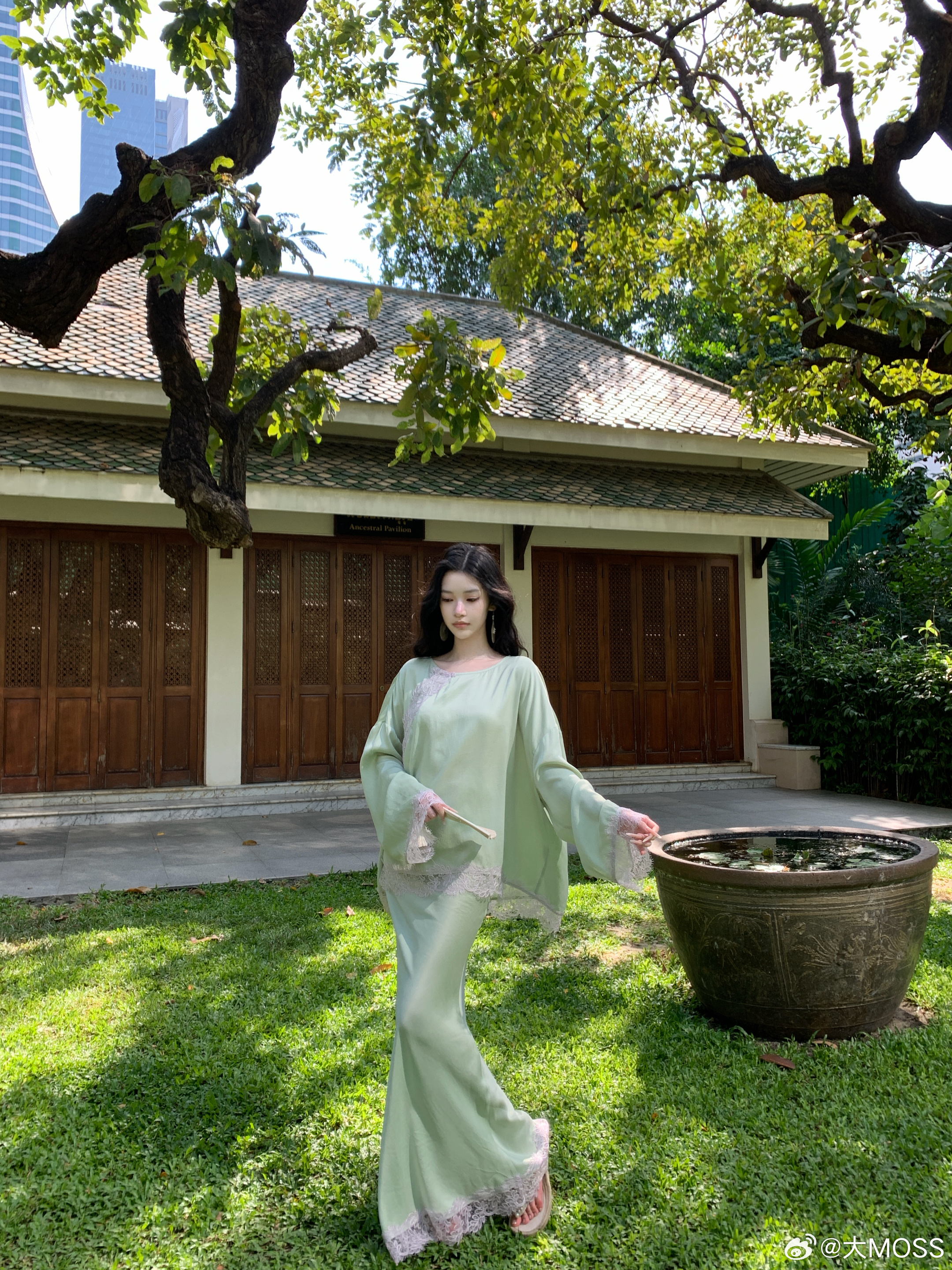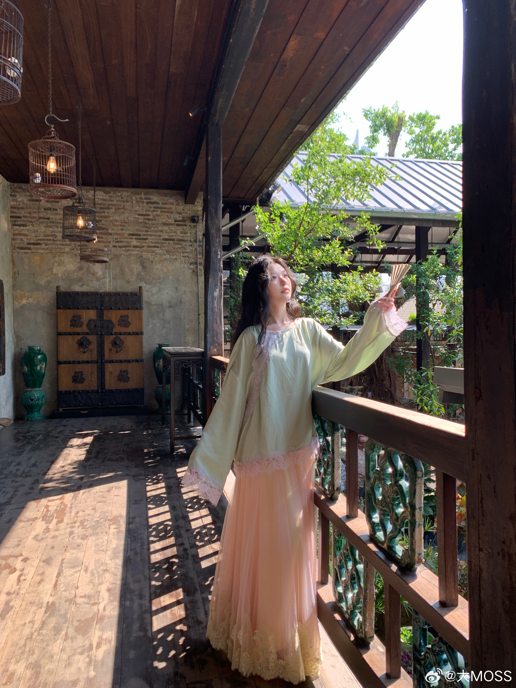 𝑴𝑶𝑺𝑺 𝟑.𝟏𝟓/𝟐𝟎:𝟎𝟎𝒑𝒎【此间春色】🍃🌿新中式拼接蕾丝铜氨上衣+半裙套装薄荷绿铜氨上衣以新中式松弛感为核心设计理念,睫毛蕾丝拼接是点晴之笔,如流水蜿蜒般呼应中式美学的流动感。衣摆与袖口的不规则蕾丝毛边,打破了纯色的单调,增添了浪漫随性感。裙身整体保持纯色的简约干净新中式穿搭