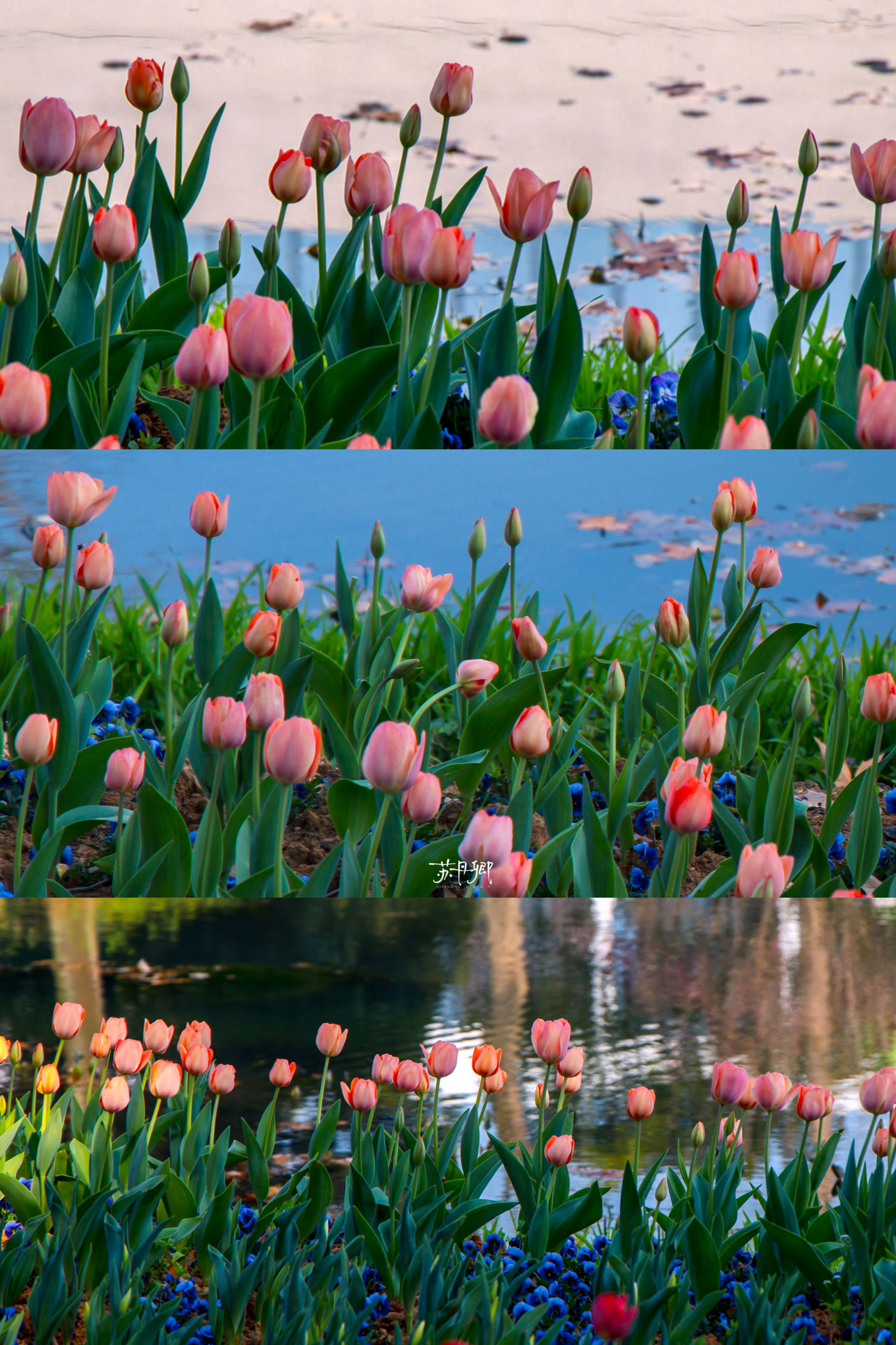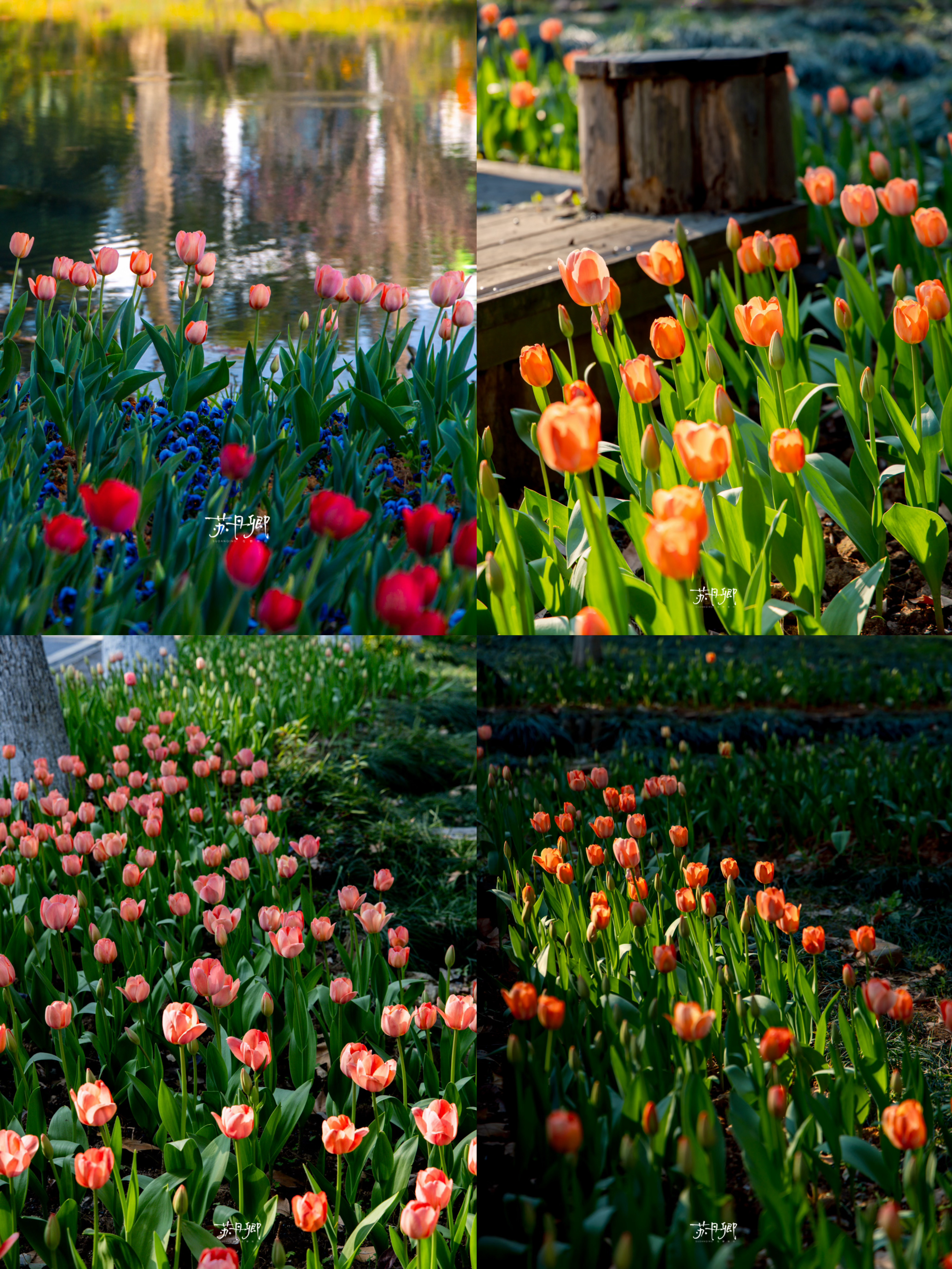 ✅植植屋正前方的湖边(进门右转➡️,夏日看睡莲的区域之一)虽然很多郁金香还是花骨朵,但从盛开区域和环境来看,此处非常雅致,或湖畔倒映,或斜阳夕照,湖光林木间,特别有莫奈花园的韵味。📸最佳拍摄时间是下午3半之后,至落日前的光线非常柔美;