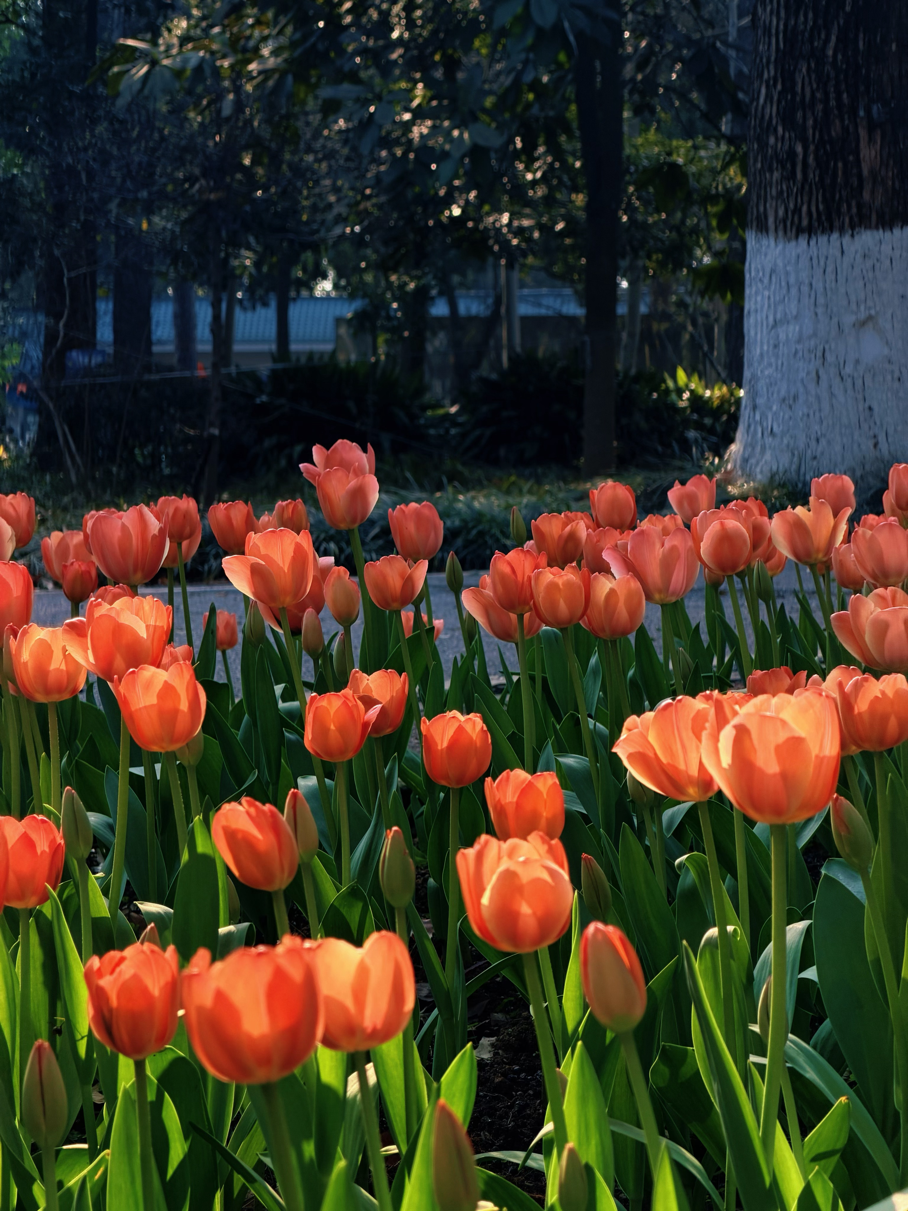 ✅待霜亭区域颇大且集中,色彩丰富,有花间小径,拍花拍人像都很美。走累了,到亭子里坐坐,小憩的同时春风拂面,看着被春光浸透的郁金香,真的很治愈,且能量充沛。📸这里拍人像更有发挥空间,开得比较饱满。