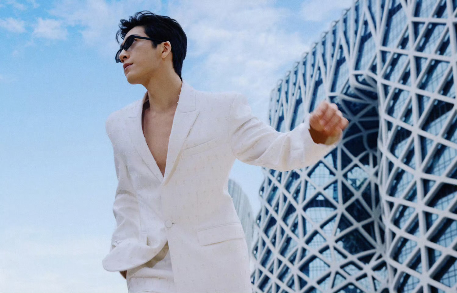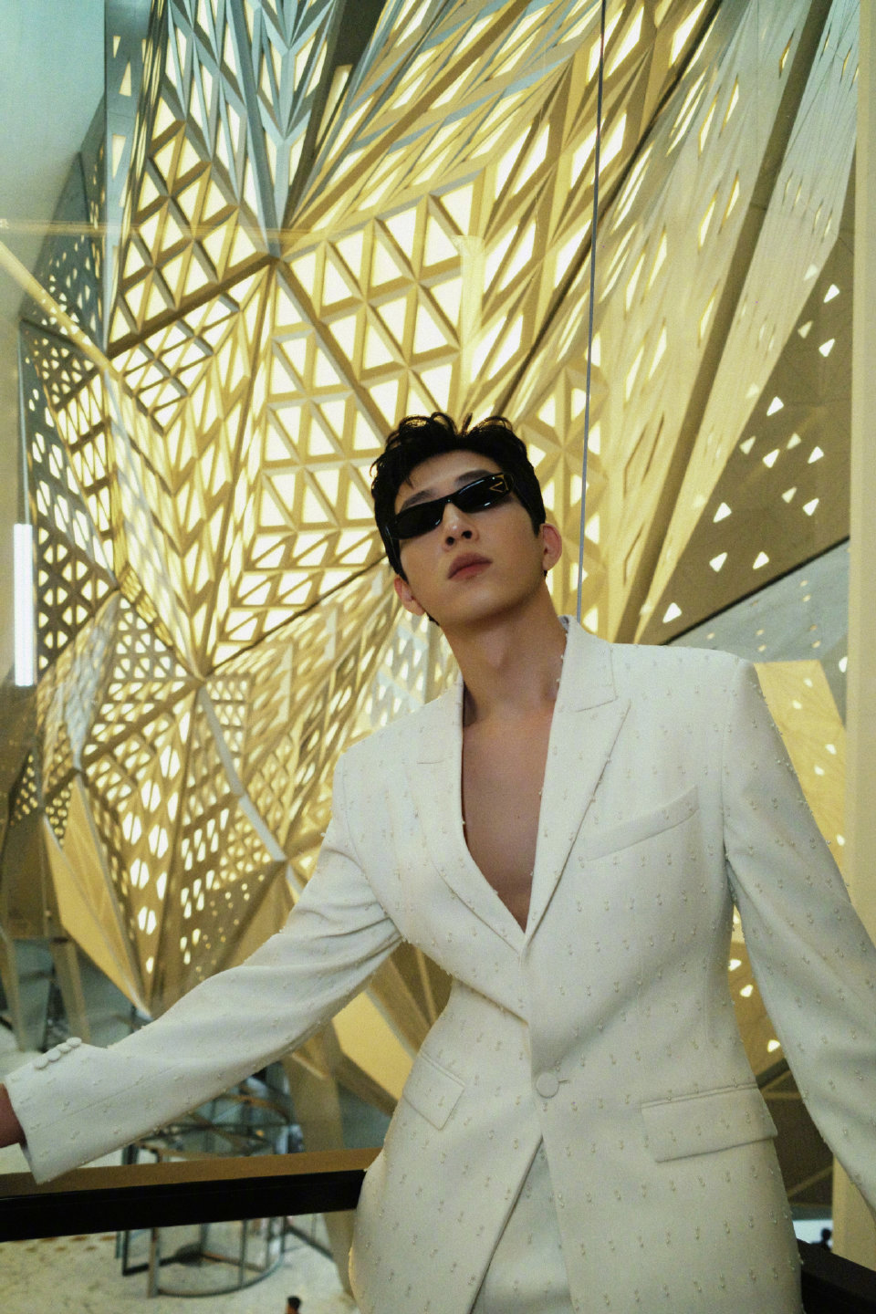 井柏然 作为全球品牌大使亮相新濠天地活动,真空演绎的白色珍珠套装,搭配背头墨镜造型,矜贵优雅气质,再配上现代风格的建筑,勾勒出型男的潇洒风度。硬照照拍摄完全是驾轻就熟~ 井柏然