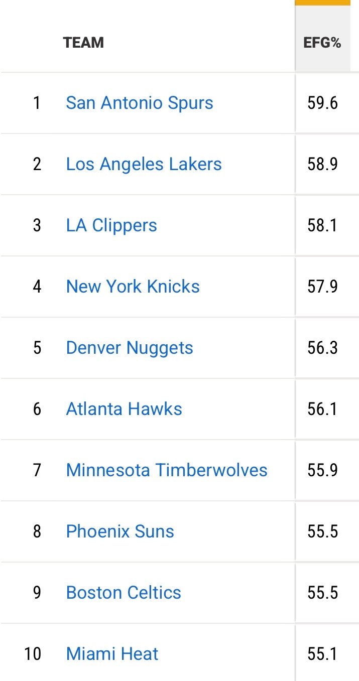 最近8场比赛,湖人7胜1负,在此期间的进攻效率联盟第二,净效率联盟第二,有效命中率联盟第二,真实命中率联盟第三。