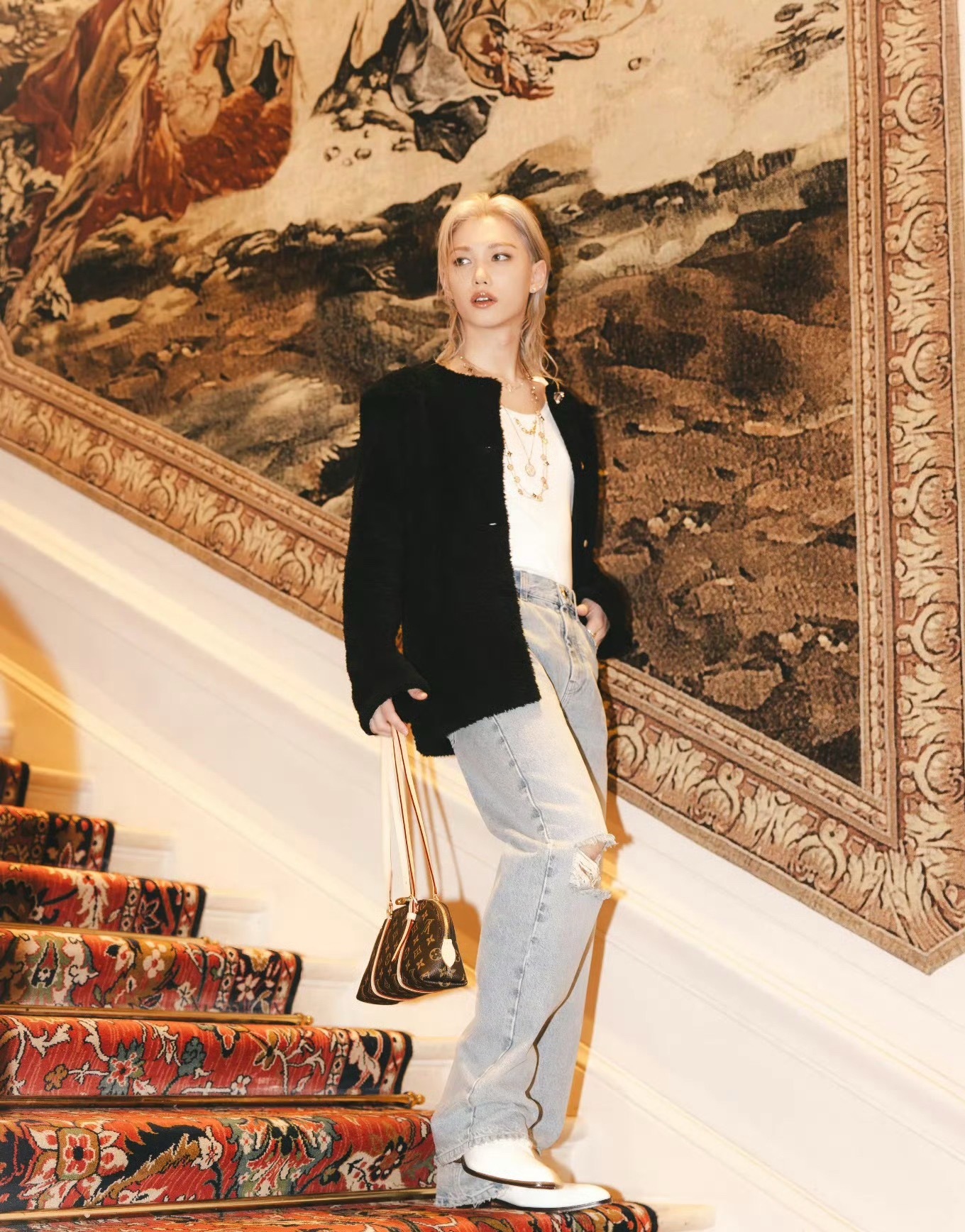 Monogram Eden 图案,把细碎花卉融入标志性的 Monogram 印花之中,既保留品牌的经典基因,也多了一层柔软的复古浪漫。无论搭配利落西装、针织连衣裙,还是简约日常造型,这种横向比例的 East West 手袋都能轻松成为整体造型的点睛之笔。