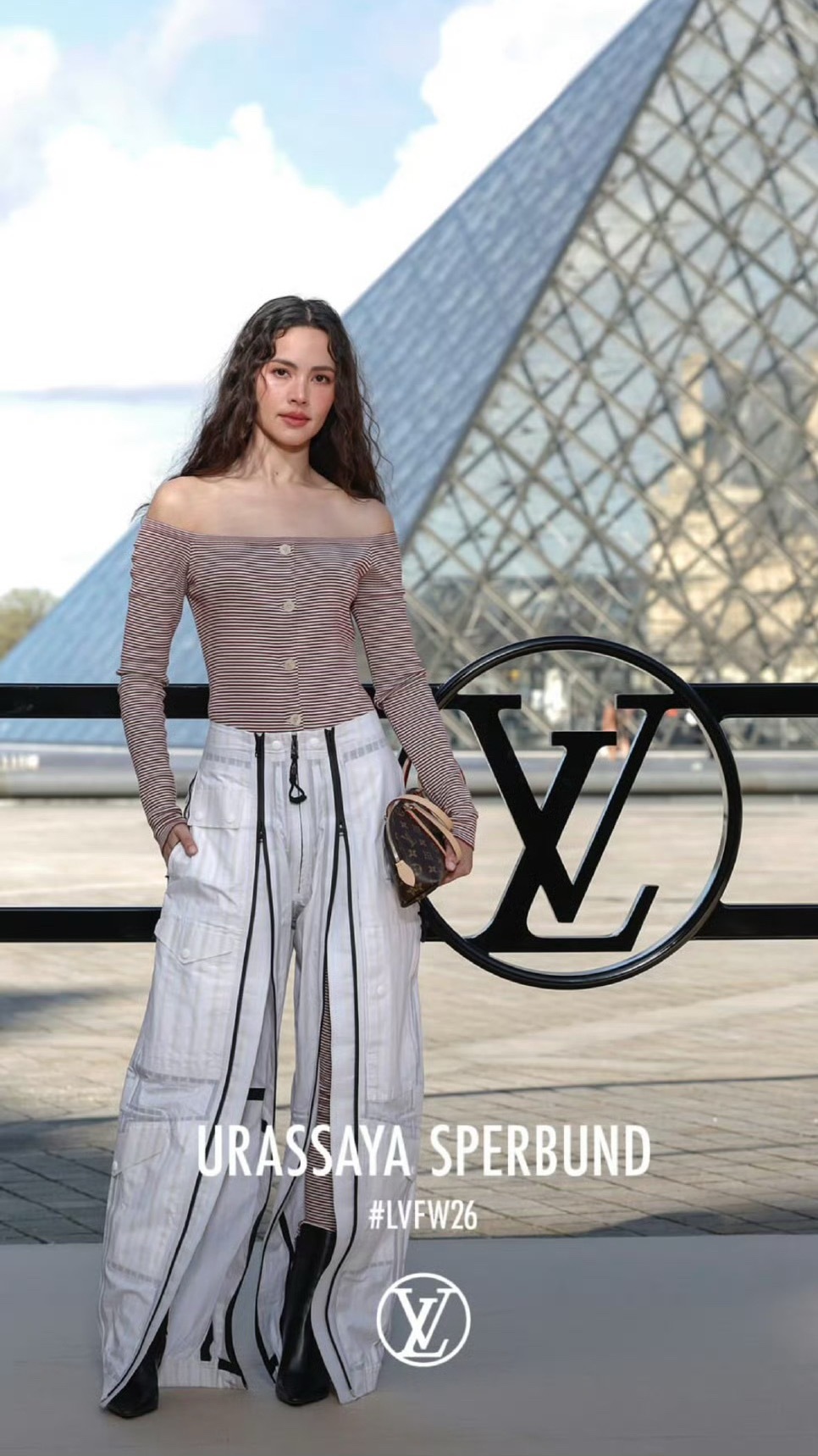 这款 LV Squire East West 手袋的灵感可以追溯到品牌经典的 Louis Vuitton Alma Bag。将 1934 年 Alma 的圆润结构重新拉长、横向延展,再以长柄设计强化手提的姿态感,让包袋在视觉上更显轻盈与时装感。