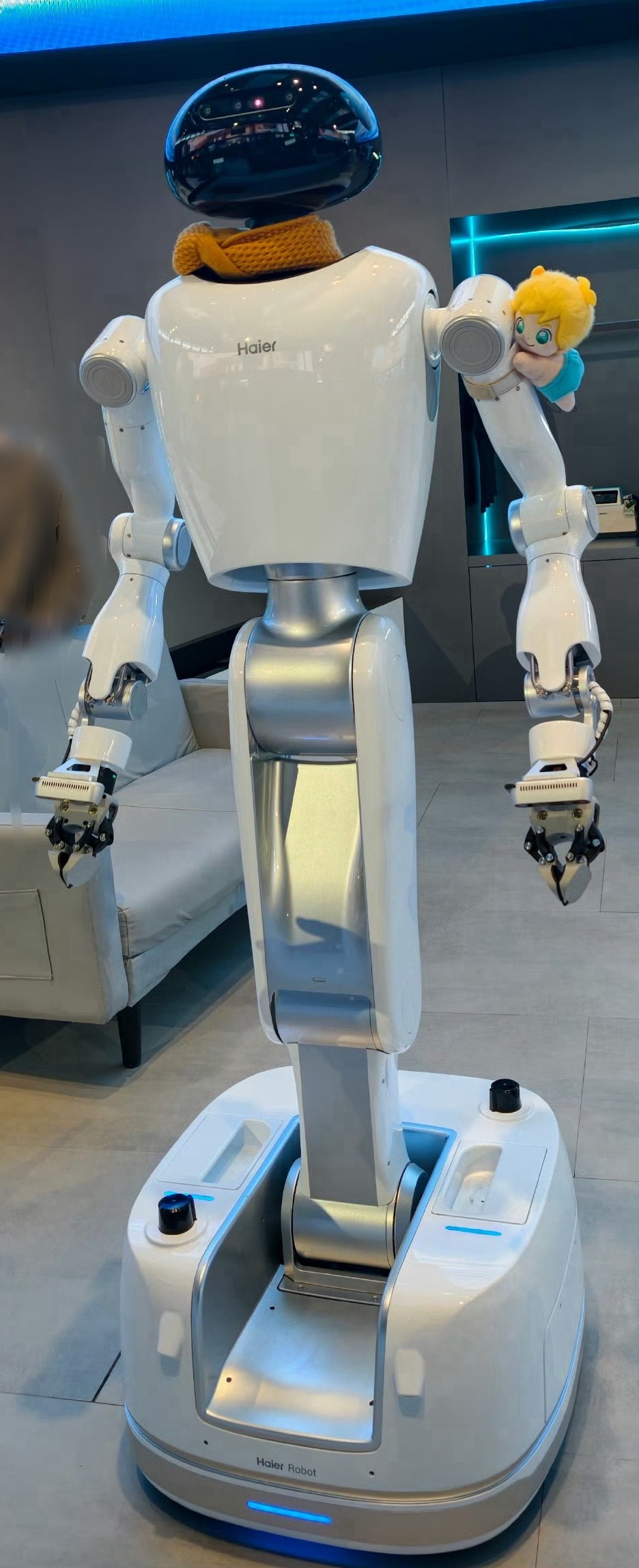跟现场的人聊了下,海尔在机器人这块布局挺广的,星动纪元、乐聚这些本体厂都有合作,自己也投了灵西做灵巧手。但他们真正的筹码是那个"智家大脑"和遍布全国的门店——别的公司愁数据从哪来,海尔直接把机器人扔进真实家庭场景里训练,洗衣机、冰箱都是现成的协作对象。