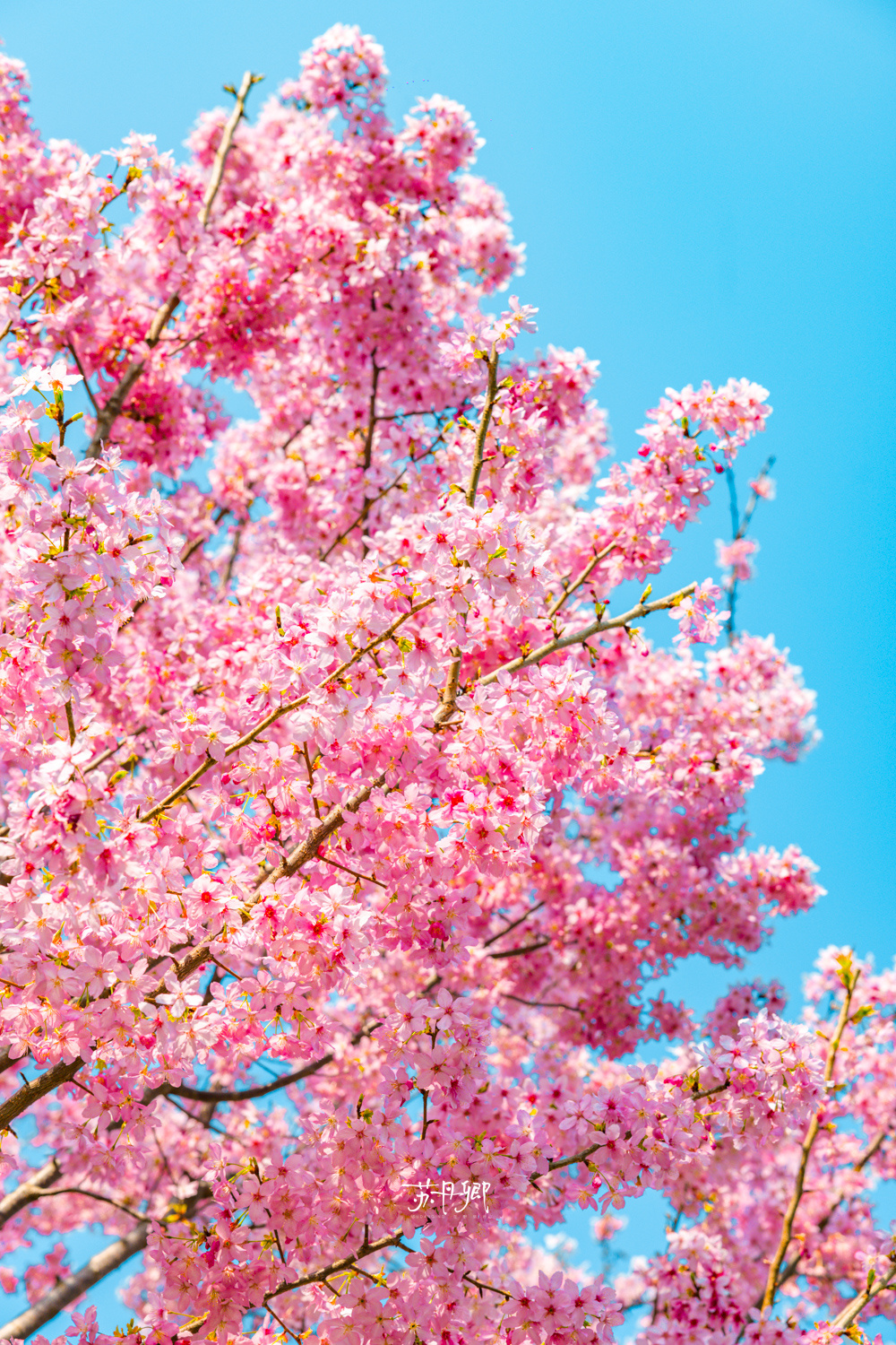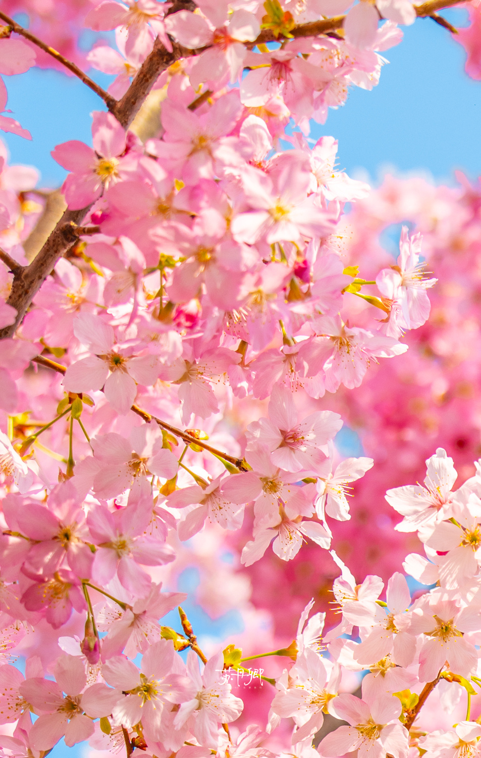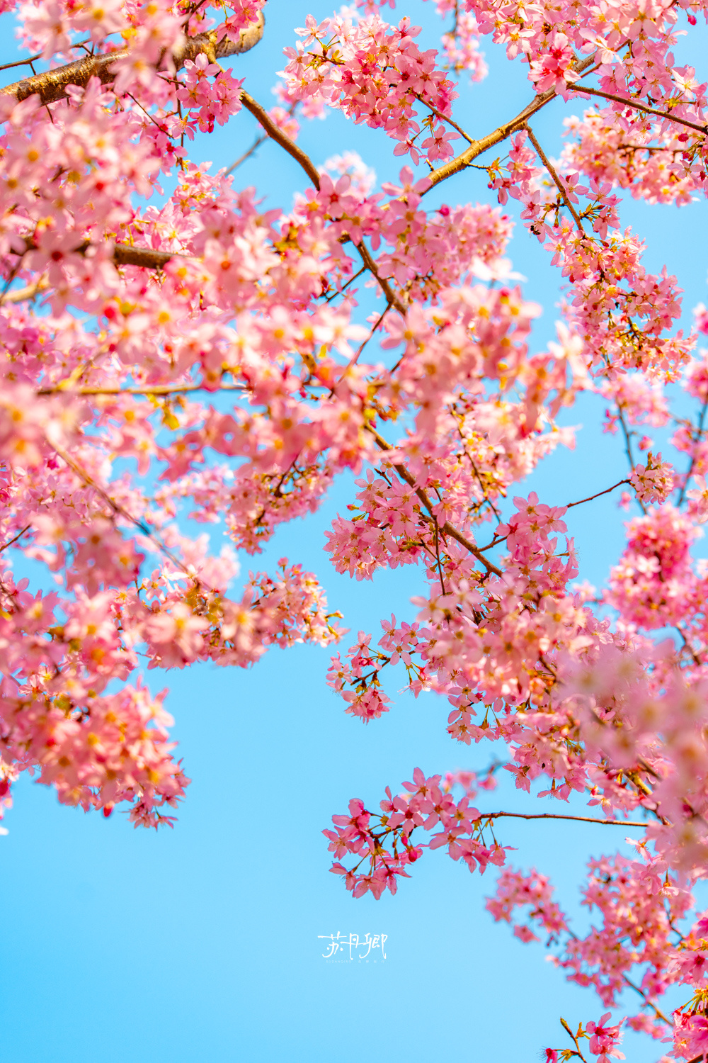 赶紧冲‼️趁着没下雨☔️趁着还没降温🥶龟山的樱花大道已经爆开‼️蓝天下的寒飞樱召唤来了“1亿人”打卡武汉最美樱花胜地(之一)!