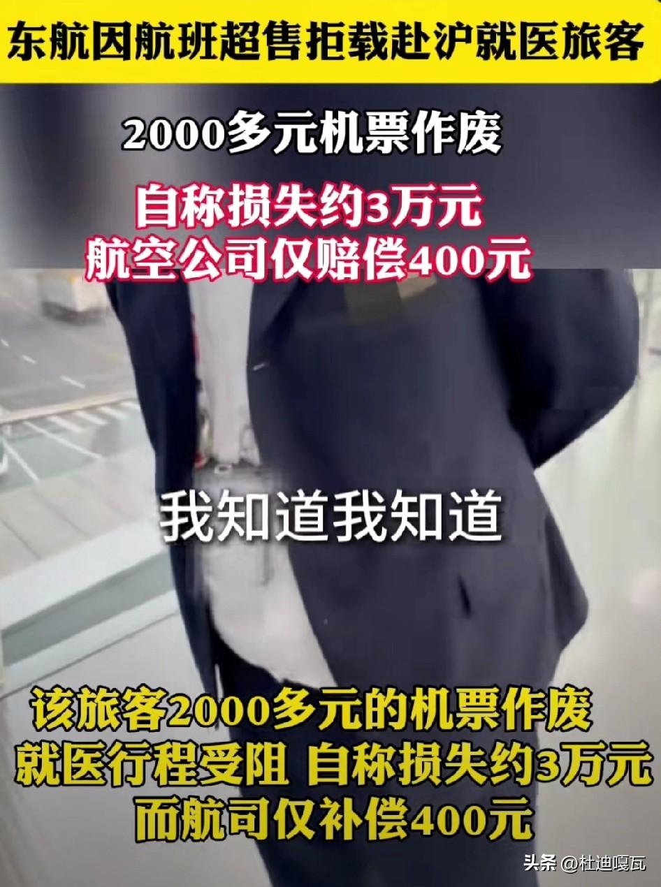 这事搁谁心里都不舒服,和其他乘客一样都是花了2000多块钱买的机票,哪怕自己早来了也只能眼睁睁的看着后面的乘客登机,而工作人员的一句补偿400元,直接让这位乘客崩溃了。 自己花了30000块约的专家号就这样泡汤了,而东航却只愿补偿400元,也不光是钱的问题,毕竟这个专家号太难约了,这些大公司是无法想象普通人看个病有多么难。 就像网友所说的那样,既然是航空公司的问题,由于改签所造成的一切损失都应该进行补偿,而不仅仅只是这400元!