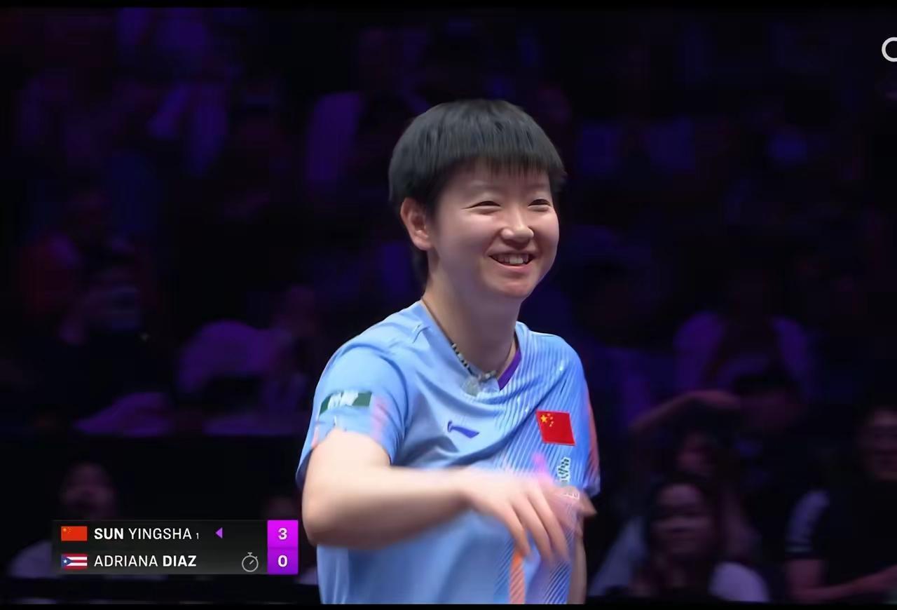 孙颖莎场上“宠闺蜜式”打球也太圈粉了!重庆冠军赛女单1/8决赛,她以3-0干净利落击败迪亚兹,顺利晋级八强,三局比分11-5、11-7、11-5,实力拉满。 迪亚兹如今进步超亮眼,不再只靠力量硬冲,侧切、弹击等技术越来越全面,完全配得上马琳指导“最强外协”的评价。孙颖莎打得松弛又可爱,丢球会轻拍大腿自责,赢下最后一分立刻换上笑脸,暖心安慰对手还送上“good match”的认可。 真正的顶级运动员,从来不止于赛场碾压,更有藏在细节里的格局与温柔。场上全力以赴尊重比赛,场下真诚友善尊重对手,孙颖莎用实力与风度圈粉无数。 这样又猛又甜的莎莎,谁看了不心动?