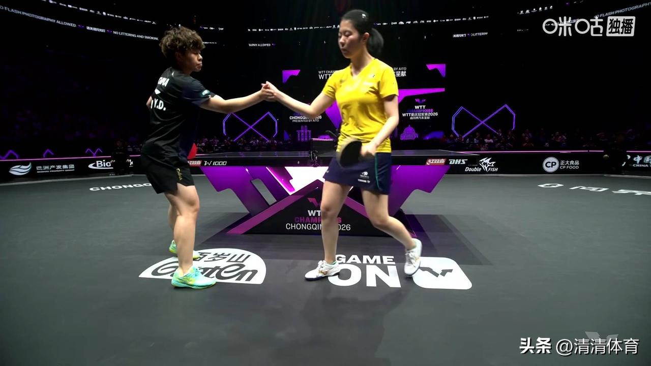 WTT重庆冠军赛女单1/8决赛,王艺迪3-0(11-9、11-8、11-4)刘洋