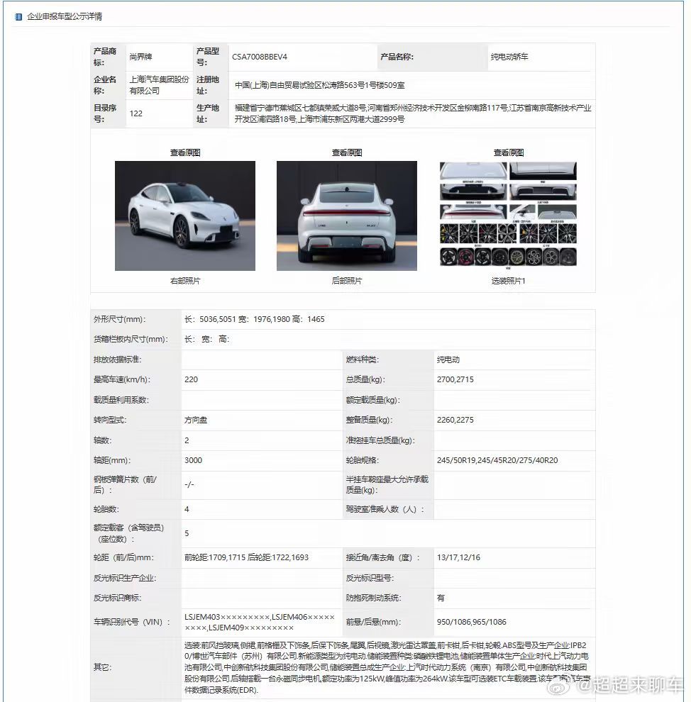 刚看了尚界Z7和Z7T的工信部申报图,真的被狠狠惊艳到了。尚界Z7工信部公示尚界Z7轿跑猎装双车同步公示别再只盯着颜值和智驾了,这车最让人放心的是背后的“双保险”:上汽70年造车底蕴把控整车制造和品控,大到车身架构,小到装配细节,都经得起推敲;华为全栈技术负责智能与三电,后续还能通过OTA持续升级智驾、座舱功能,买回去三五年都不会落伍,再加上刚登场的新一代896线双光路图像级激光雷达很有可能上车,硬件也是超豪华。轿跑+猎装双车齐发只是基础,这种“老牌制造硬实力+前沿科技可进化”的组合,才是真的戳中年轻人对“长期靠谱”的需求。