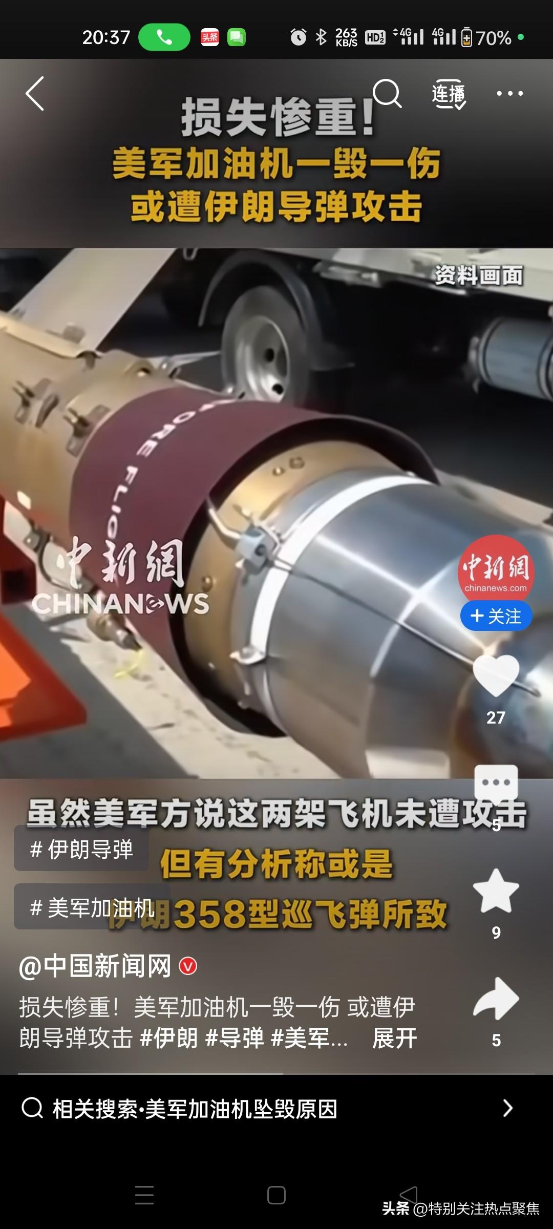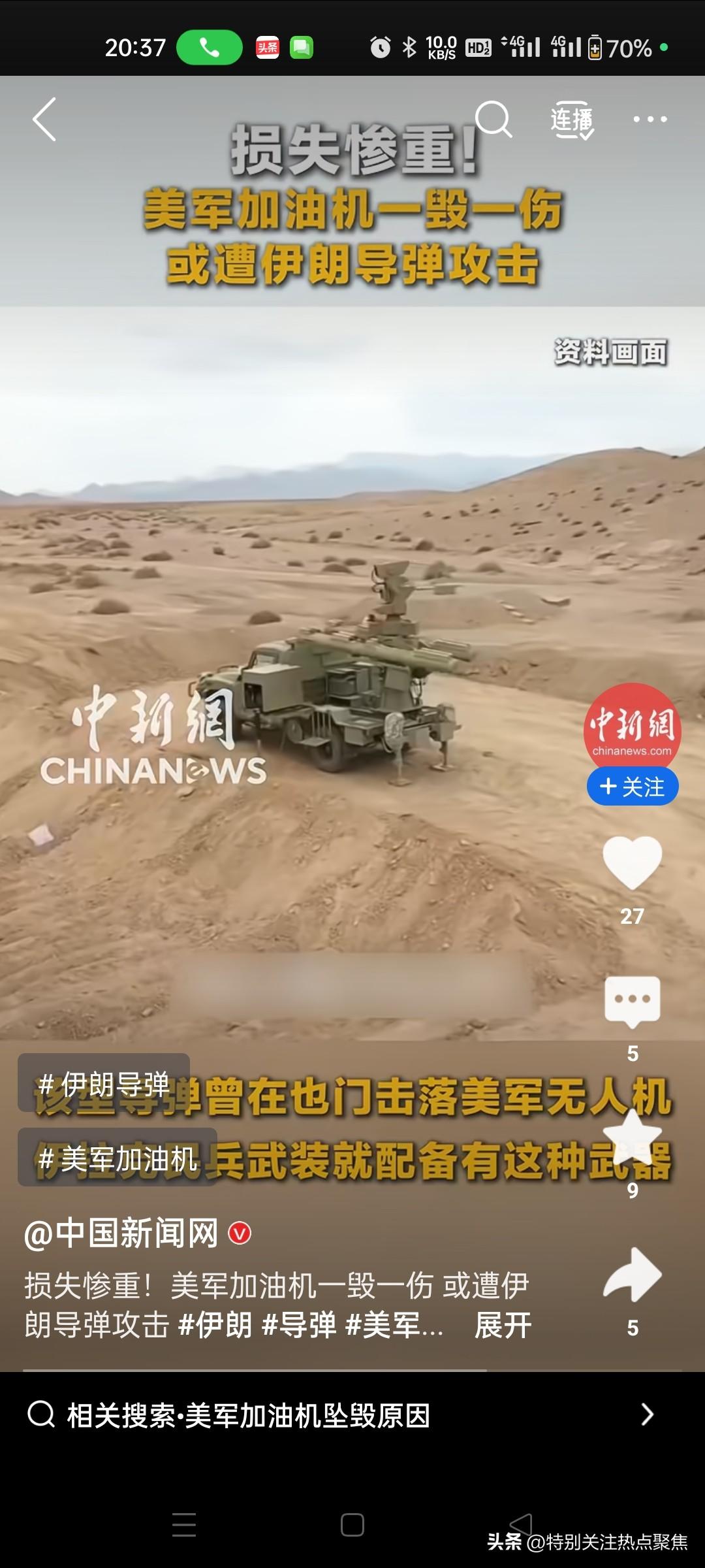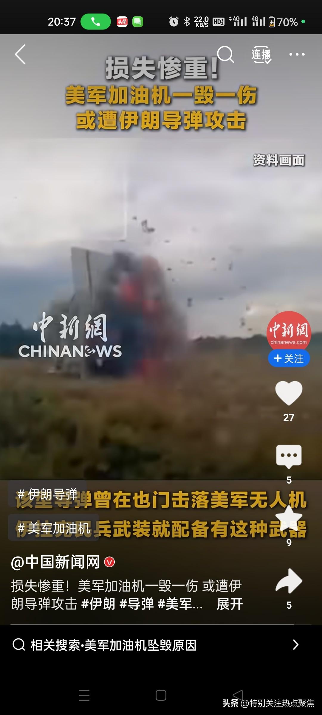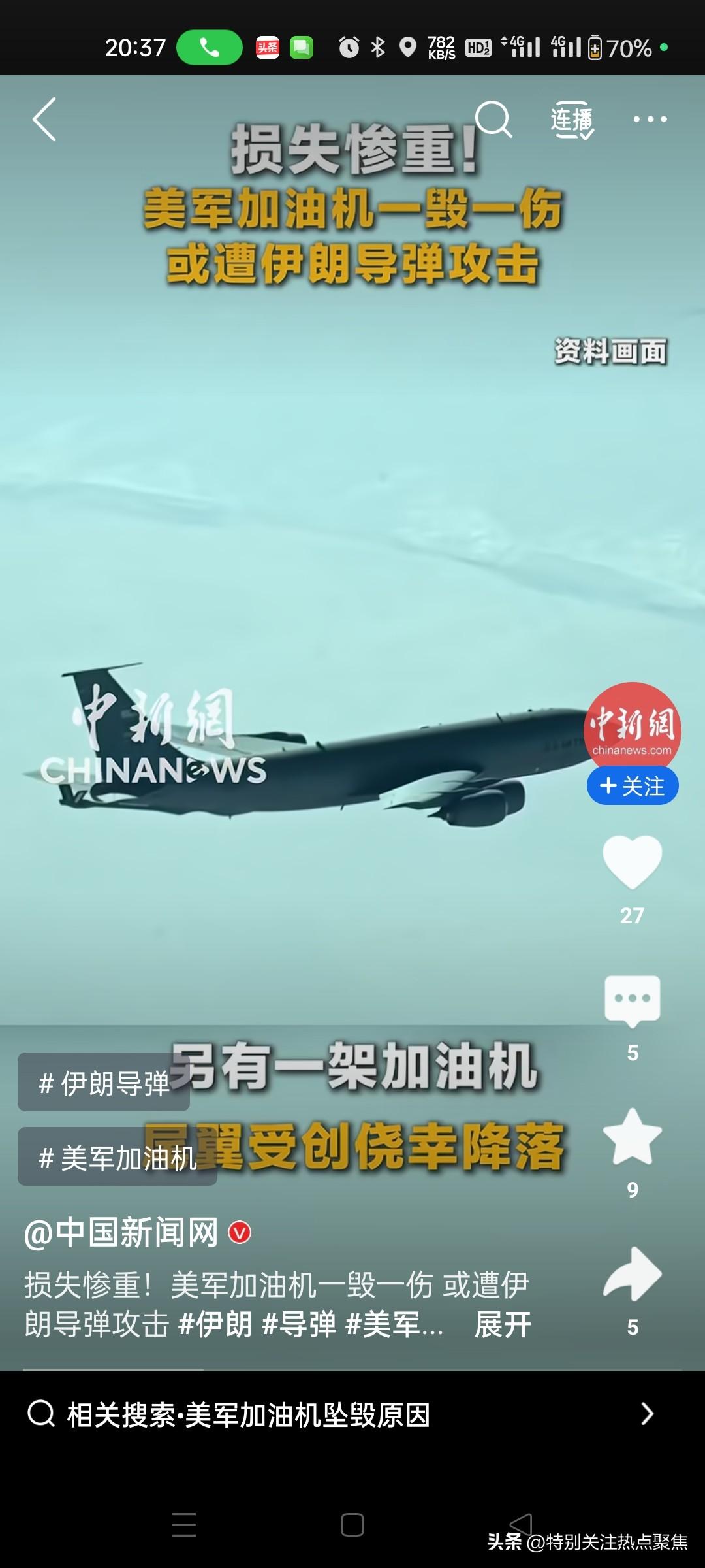 美军损失惨重加油机一毁一伤,机毁人亡 伊朗武装部队称,一架美国军用加油机在伊拉克西部被抵抗组织发射的导弹击落,机组人员全部遇难。 美军这次可真是栽大跟头了,伊朗武装部队消息称,美国一架军用加油机在伊拉克西部被抵抗组织用导弹给击落了,机毁人亡,还有一架也受伤了。这损失可太惨重了,机组人员全部遇难,那些家庭估计都要悲痛欲绝。 美军在海外到处搞事情,伊拉克这片土地可没少被他们折腾。抵抗组织这一出手,也算是给美军一个狠狠的教训。这也说明美军在海外的军事行动并不是那么顺风顺水,他们的霸权行径终究会遭到反抗,不知道后续美军会有啥反应,会不会再去报复。