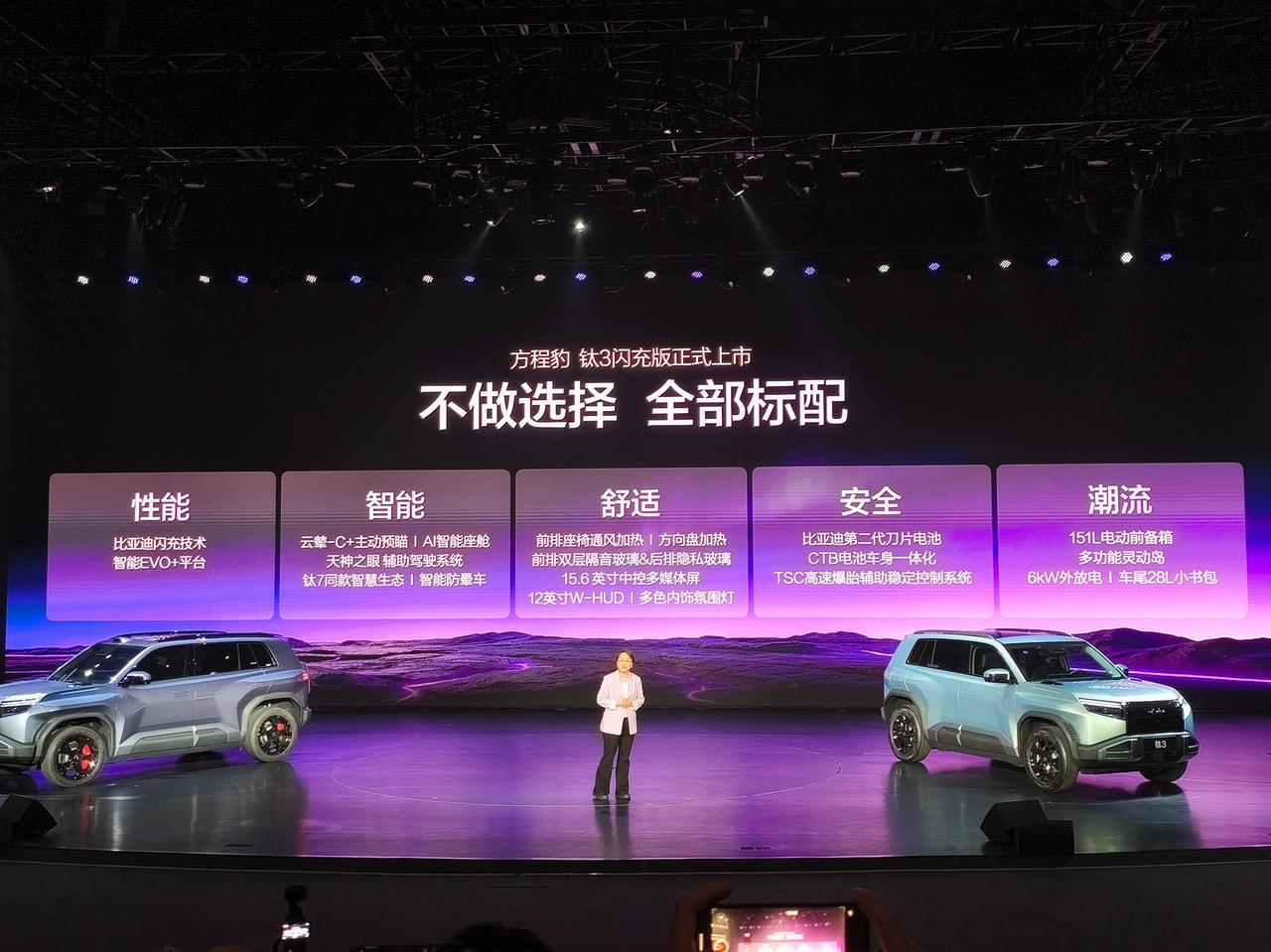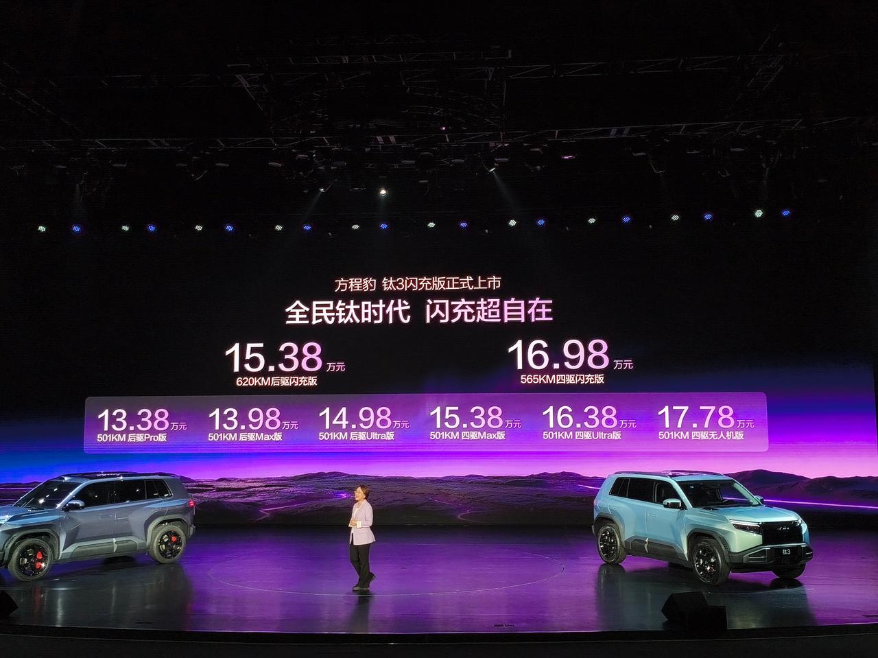 车盟快讯:3月13日,方程豹钛3闪充版正式上市,售价15.38万-16.98万元