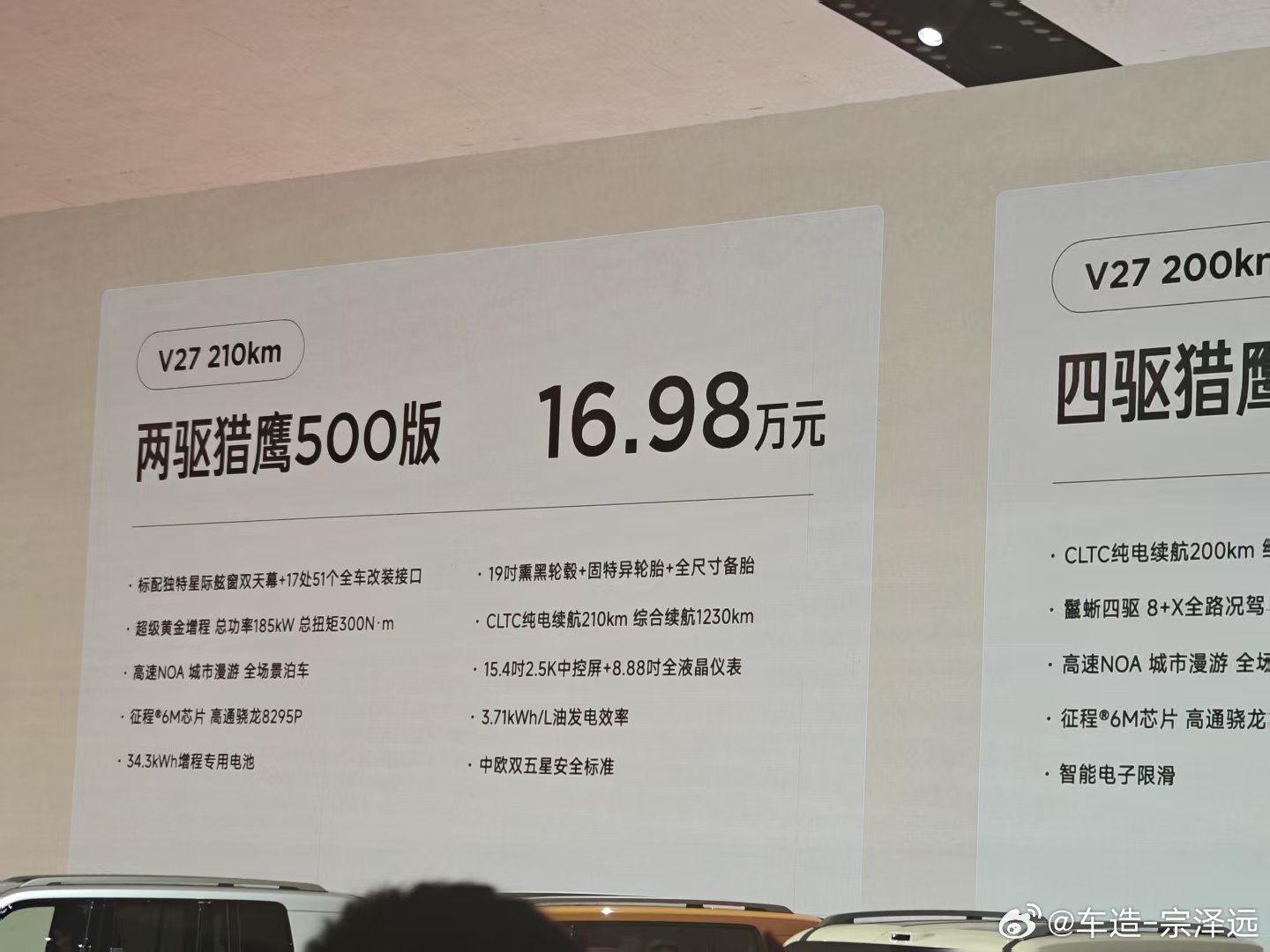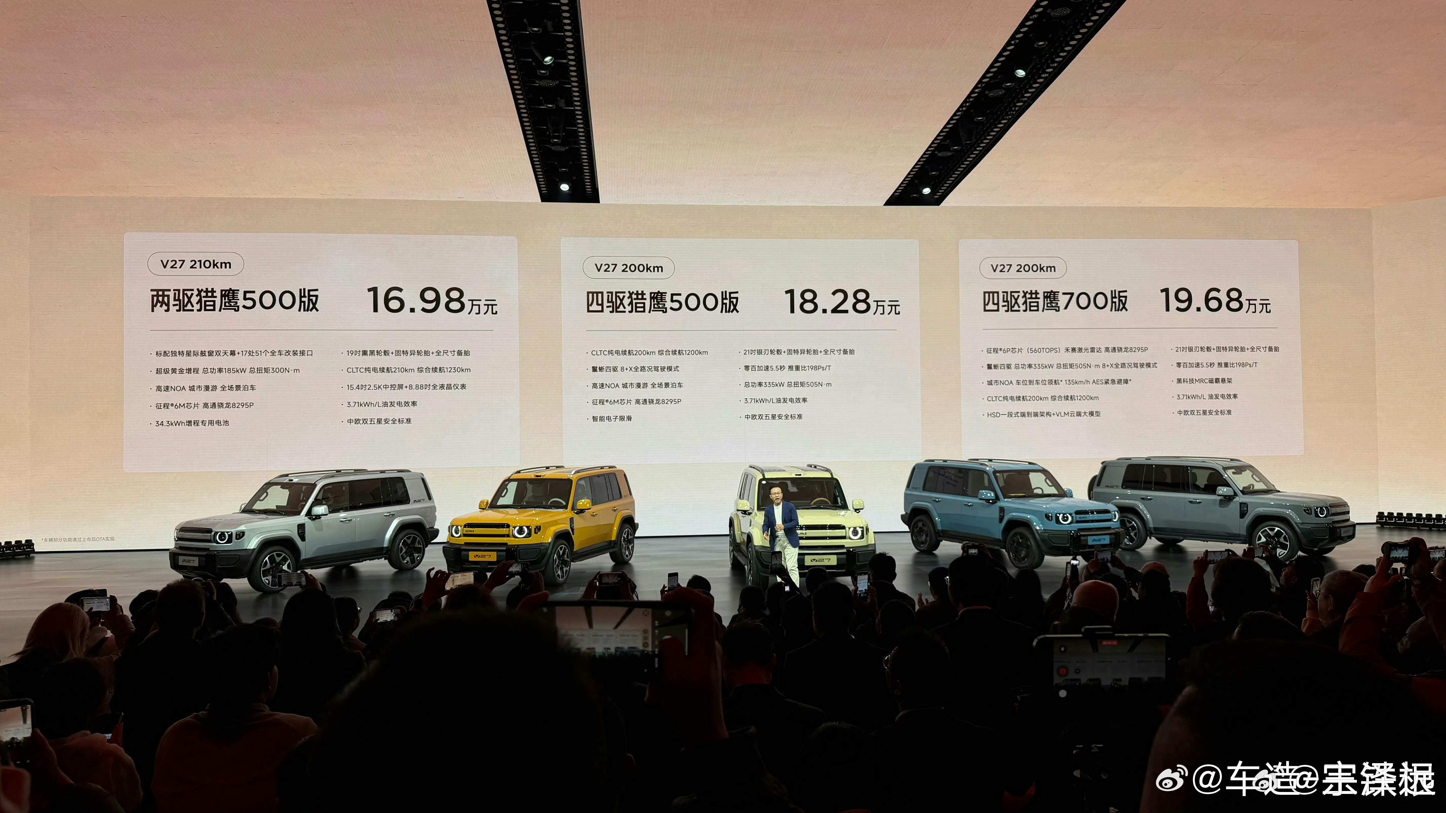 全能硬派iCAR V27价格来了~210KM两驱猎鹰500版:16.98万元200KM四驱 猎鹰500版:18.28万元200KM四驱 猎鹰700版:19.68万元建议一步到位上有MRC电磁悬架的顶配5米多长的混动四驱方盒子卖这个价格太疯了!icarv27v27全能硬派全家都爱v27智驾第一梯队稳了