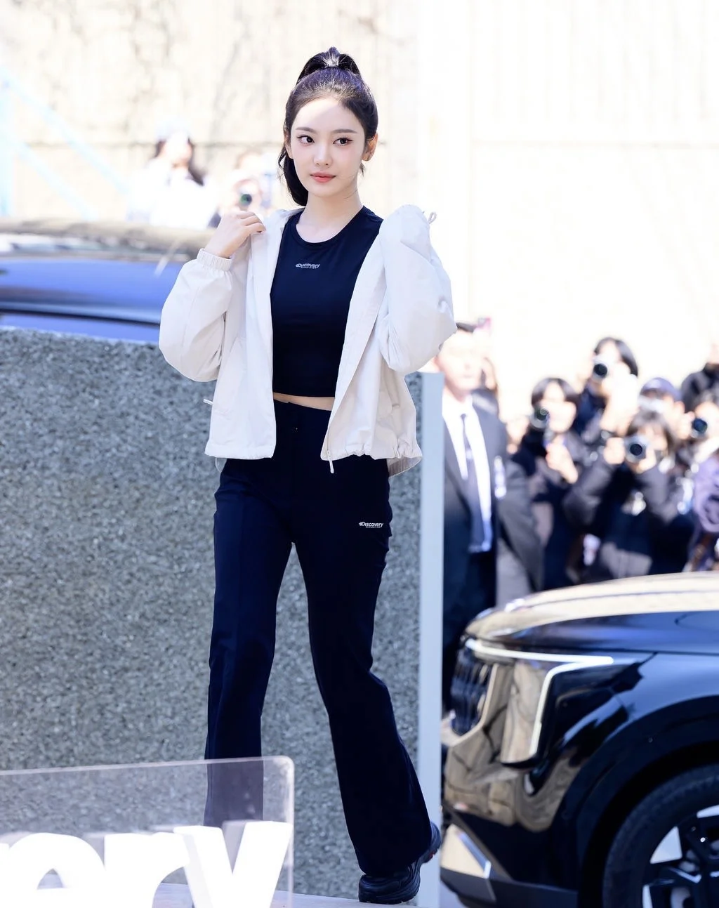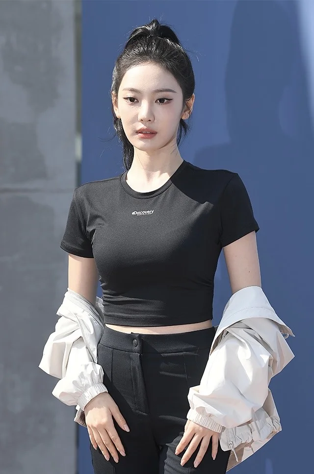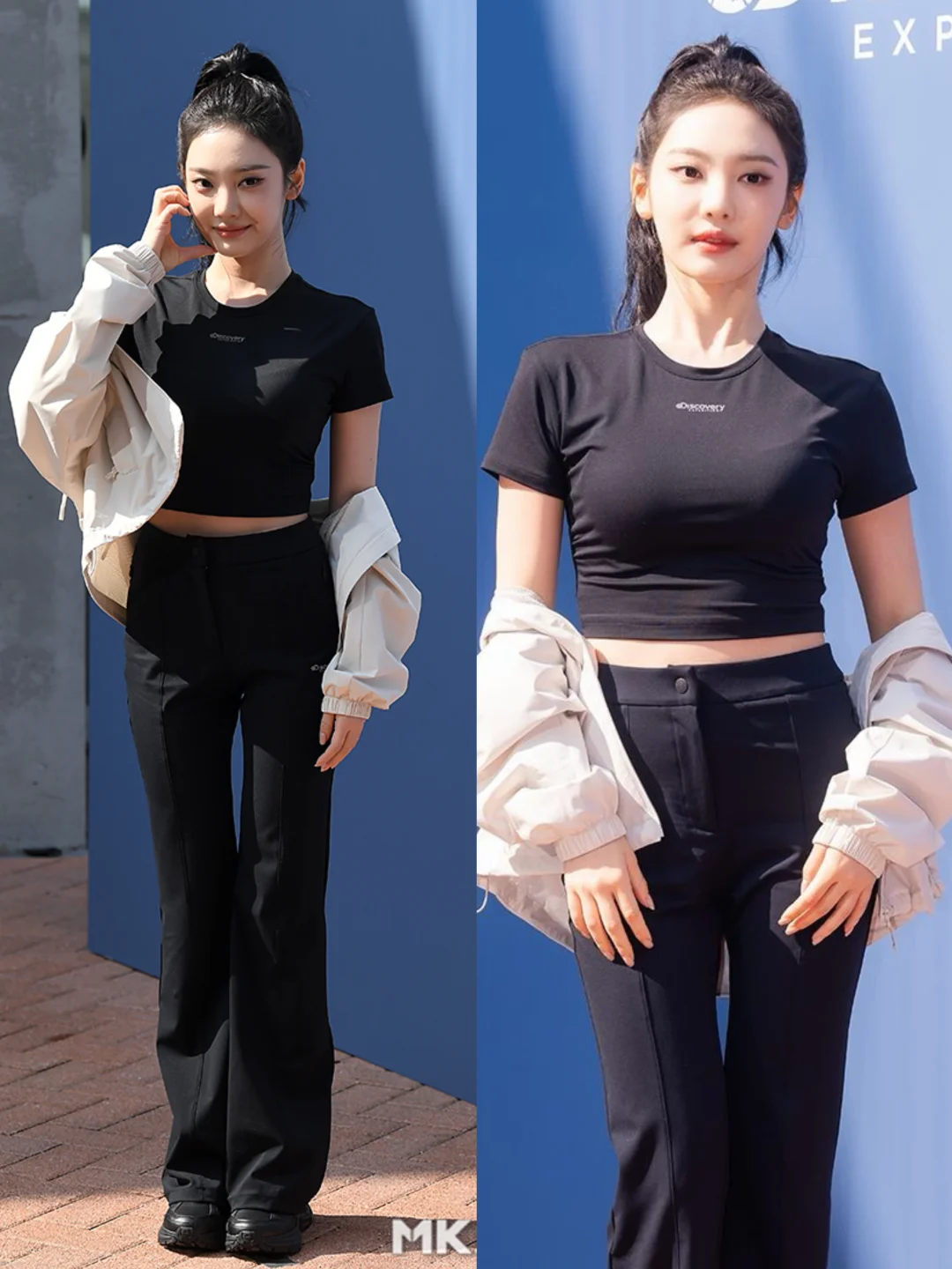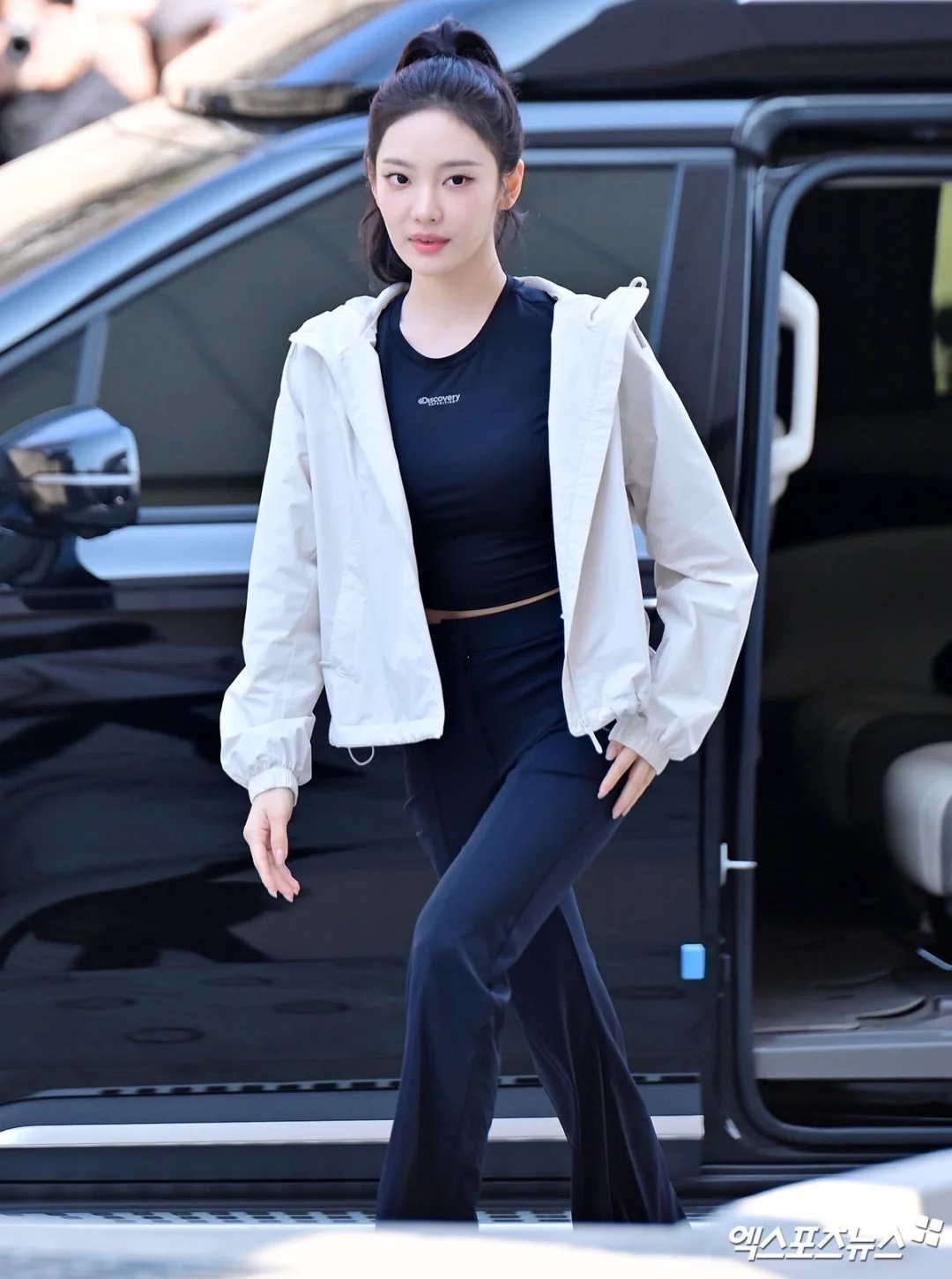 宁艺卓今日活动造型,黑色运动穿搭的宁宁真的好瘦啊!自律美女的好身材!