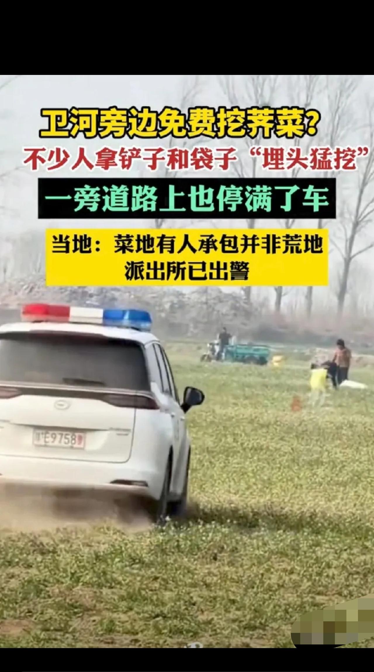 河南,一男子见地里的荠菜长得正旺,他以为没人看管,可以随便挖,便拍了条视频发到网上。没想到一下就火了,大家都提着袋子,拿着铲子过来埋头猛挖,准备回去包饺子,一时间,地里人头攒动。谁知,就在大家挖得起劲时,警车赶到,将众人驱离。原来,这片地根本不是无人看管,是人家承包的,足足200多亩,因为一条视频面目全非,承包人欲哭无泪。 就因为有人随手发了一条视频,说卫河大堤旁有大片荠菜,没人管、随便挖。 结果直接炸锅了! 男女老少拎着袋子、扛着编织袋、带着铲子锄头,乌泱泱几百人冲下地,埋头猛挖! 路边私家车排成长龙,比赶集还热闹! 大家都以为挖到就是赚到,挖得不亦乐乎,准备回家包饺子吃。 谁也没问一句:这地,到底是谁的? 直到警车开到现场,人群才懵了。 原来这根本不是什么野地! 是农户承包了200多亩的荠菜种植地! 因为年前没来得及收割,才被误以为是野生的。 一开始几个人挖,农户忍了。 结果视频一传十十传百,人越聚越多,整片地被挖得面目全非,连根都不剩! 农户拦都拦不住,只能哭着报警。 一年的辛苦、投入的成本、全家的指望, 就因为一条造谣蹭流量的视频,一夜之间全没了! 网友看完直接炸锅: ✅“以为捡便宜,其实是抢别人的劳动成果!” ✅“最可恨的是发视频造谣的,为了流量毫无底线!” ✅“不知情可以理解,但跟风哄抢真的太没素质了!” ✅“法律必须保护老实人,不能让种地的白白受委屈!” 我真的特别感慨: 很多人觉得“挖点野菜不算事”,但未经允许挖别人承包的作物,就是哄抢、就是侵权! 哪怕你不知情,也改变不了违法的本质。 根据《治安管理处罚法》,哄抢公私财物,完全可以拘留罚款! 这次民警只是劝离,已经是最人性化的处理了。 最该严惩的,就是那个为了流量造谣的始作俑者! 网络不是法外之地,一句随口胡说,毁了一个家庭一年的收成。 别再盲目跟风,别再贪小便宜, 更别为了流量,去伤害踏踏实实干活的人。 尊重他人劳动,守住法律底线, 比什么都重要!🙏